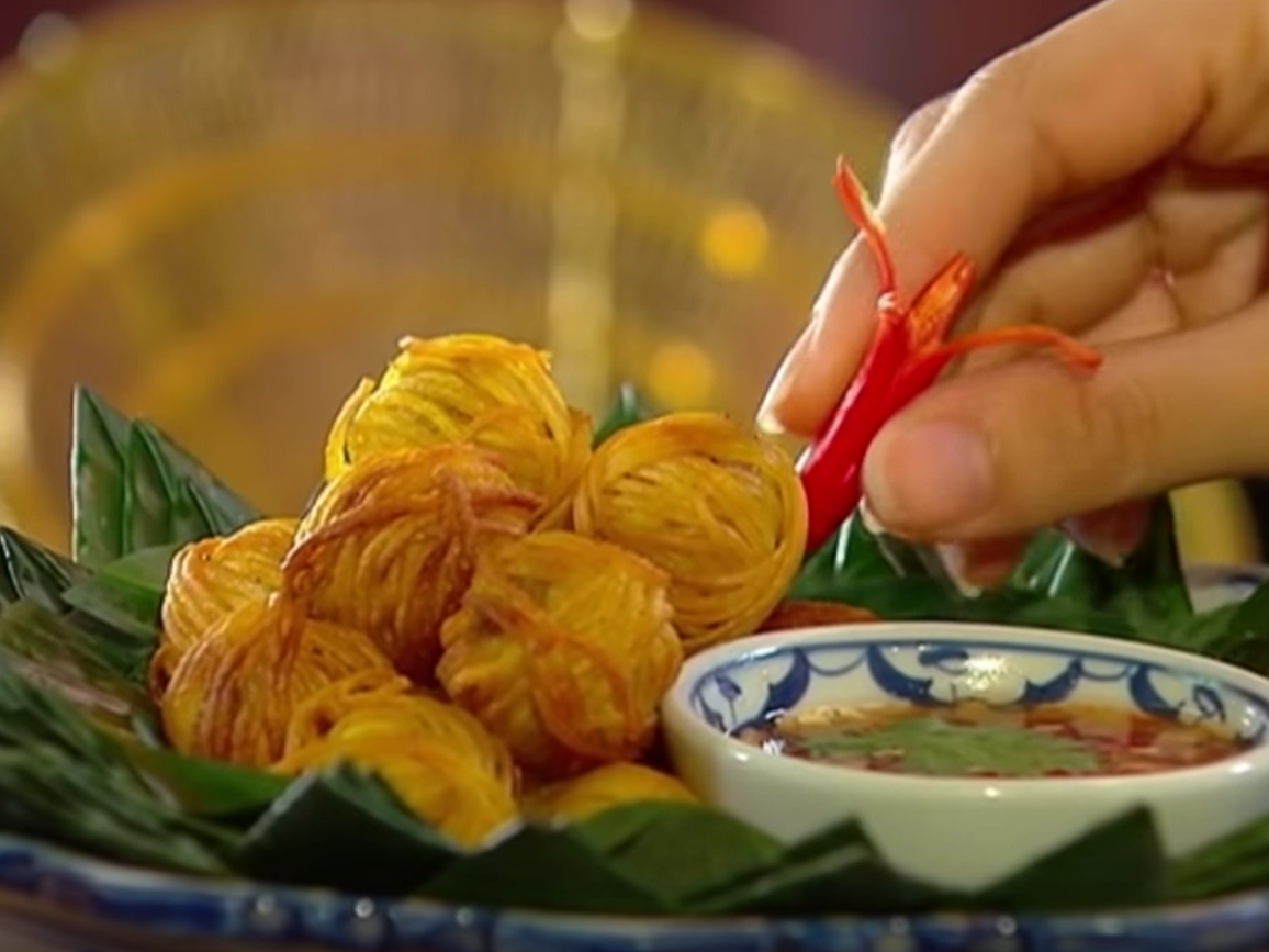 อาหารว่างโบราณที่ฟินคืนชีพมาพร้อมกับละครบุพเพสันนิวาส ในฉากที่แม่การะเกดตั้งใจทำให้คุณพี่หมื่นทาน หลังจากละครได้ออกอากาศไปก็ทำให้สาวๆหลายคนสวมบทเป็นแม่การะเกด ลุกขึ้นมาทำหมูสร่ง ซึ่งหมูสร่งฟังดูเหมือนเป็นเมนูที่ทำง่าย เพียงแค่นำหมูบดปรุงรสมาปั้นเป็นก้อนกลม แล้วพันด้วยเส้นหมี่ซั่ว จากนั้นจึงนำไปทอด แต่ความจริงแล้วเป็นเมนูที่มีความพิถีพิถัน การทอดต้องใช้ไฟกลางเพื่อไม่ให้เส้นหมี่ไหม้ก่อนที่หมูจะสุก และต้องทอดทีละด้านเพื่อไม่ให้เส้นหมี่ที่พันไว้กระจายตัว
