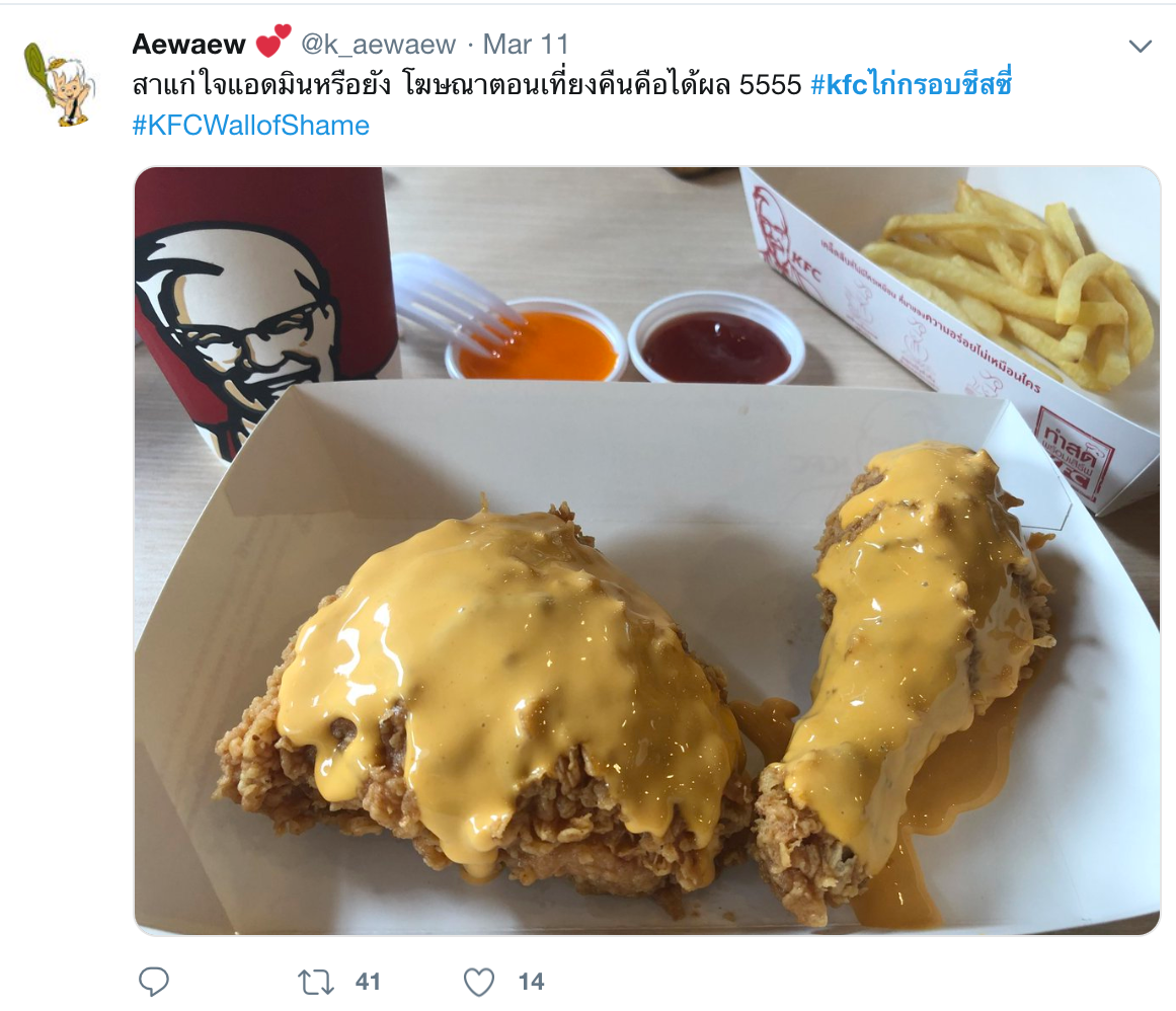 และที่มาแรงไม่แพ้เมนูอื่นๆ สำหรับเมนูไก่กรอบชีสของเคเอฟซี ที่มีกระแสรีวิวในโซเซียลและติดแฮซแท็กในทวิตเตอร์มากมาย เป็นอีกเมนูหนึ่งที่ไม่ควรพลาดและต้องลองแวะไปทานดู สำหรับคนรักชีส เพื่อเอาใจสาวกคนชอบทานชีส ที่เคเอฟซีจัดหนักจัดเต็มราดชีสเยิ้มๆบนไก่กรอบเน้นๆทุกชิ้น พอทานชีสคู่กันกับไก่กรอบแล้วไม่น่าเชื่อเลยว่าจะเป็นส่วนผสมที่ลงตัวได้ดีขนาดนี้ รสชาติก็ต้องขอบอกไว้ตรงนี้เลยว่าอร่อยชีสฟินไก่