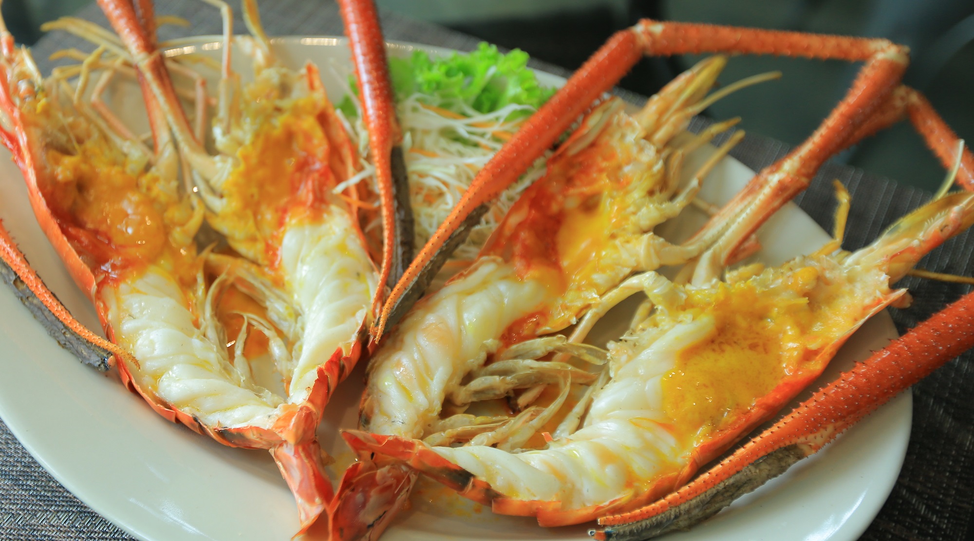 อีกหนึ่งเมนูที่เป็นเมนูยอดนิยมมานาน “กุ้งเผา” ที่กลับมาเป็นกระแสอีกครั้งจากละครเรื่อง “บุพเพสันนิวาส” ที่หลายคนดูแล้วท้องร้องไปตามๆ กัน จนต้องรีบหาเวลาว่างไปทาน ความพิเศษของเมนูนี้คือการนำกุ้งสดตัวใหญ่ๆ ไปเผาจนได้ที่ ไม่แห้งจนเกินไป เสิร์ฟพร้อมกับน้ำจิ้มซีฟู้ดรสเด็ด ที่ไม่ว่าใครได้ทานแล้วต้องติดใจ กับความเด้งและความหวานของเนื้อกุ้งเผาและมันกุ้งที่ไหลเยิ้ม บอกได้คำเดียวว่าฟินแน่นอน