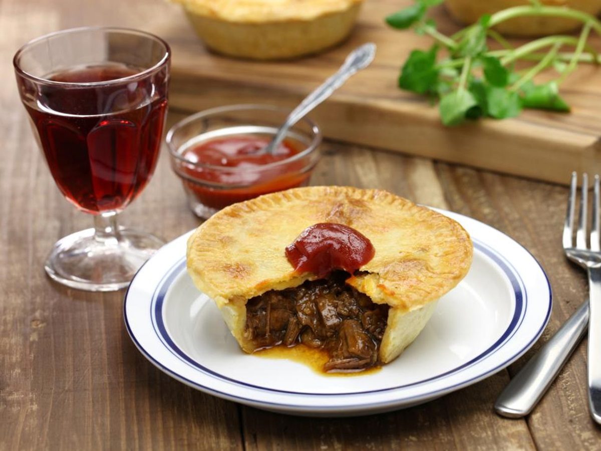 จานแรกเป็นของออสเตรเลีย “พายเนื้อ” ชื่อสั้นๆ จำง่ายๆ เป็นพายเนื้อธรรมดาๆ นี่แหละ แต่คนออสซี่ชอบนักชอบหนา ถือว่าเป็นอาหารประจำชาติเลยทีเดียว พายเนื้อมีส่วนผสมของน้ำเกรวี่ เห็ด หัวหอมและแครอท คนออสเตรเลียรักที่จะรับประทานพายเนื้อมาก หากเดินไปตามท้องถนนจะพบเห็นร้านขายพายเนื้อมากมาย ทำให้การบริโภคเนื้อวัวในประเทศออสเตรเลียมีปริมาณหลายล้านตัวต่อปี แต่ถ้าจะหาร้านพายเนื้ออร่อยเด็ด มีคนแนะนำว่าต้องไปที่ร้าน ” Harry’s Cafe de Wheels” ตั้งอยู่ที่นครซิดนีย์ เมืองหลวง ขายพายเนื้อมาตั้งแต่ปี ค.ศ. 1938  ร้านนี้ถือว่าห้ามพลาดหากรักจะกินพายเนื้อ เพราะรสชาติของเนื้อในแป้งพาย คนออสเตรเลียยกนิ้วให้ว่าอร่อยที่สุดในประเทศ