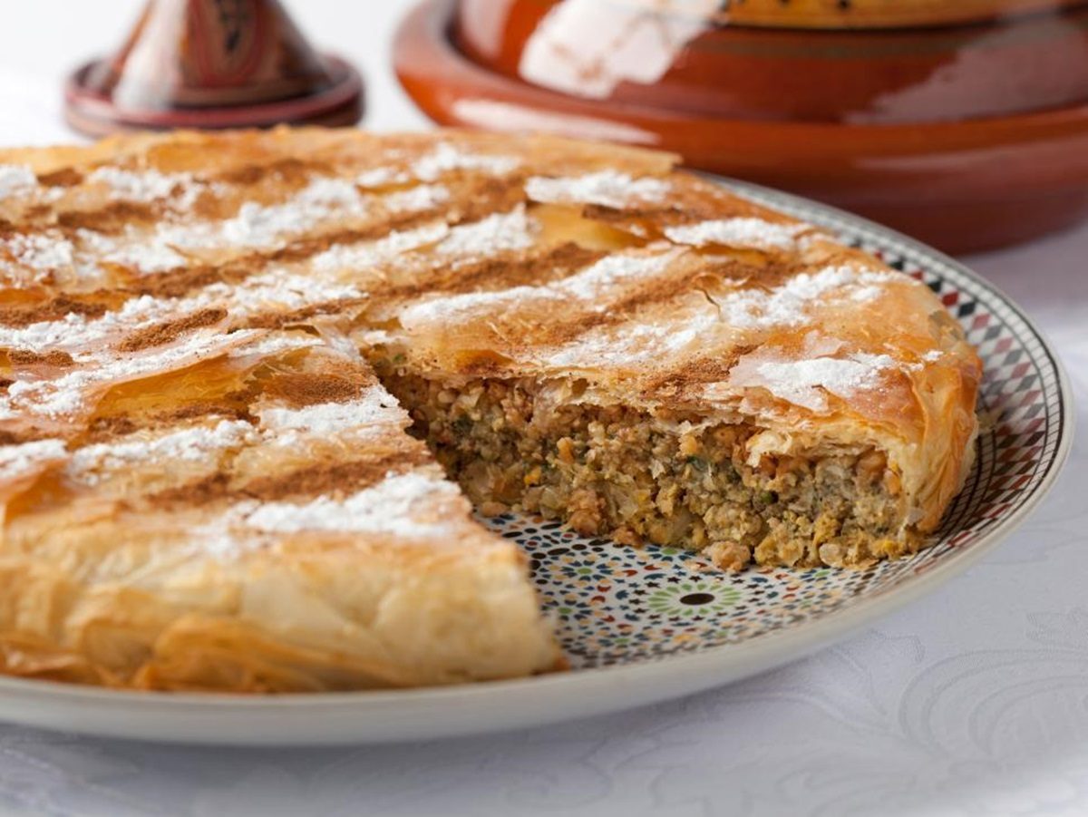 อาหารโมร็อกโกดั้งเดิมที่กินในประเทศและยังแพร่หลายไปยังแอลจีเรียและตูนิเซีย คือพาย  “B’stilla(Pastilla)” กล่าวขานว่าเป็น “โมรอคโคสไตล์” ที่มีความสลับซับซ้อนในการปรุงยิ่งนัก  ส่วนผสมในแบบดั้งเดิมที่ทำให้เนื้อพายมีรสหวานเล็กน้อยเป็นนกพิราบ แต่ตอนนี้ส่วนมากแล้วเป็นไก่หรือนกกระทา ราดด้วยน้ำตาลไอซิ่งและอบเชย บางทีก็ใช้น้ำตาลกรวด  ซึ่งทำให้จานนี้หวานเค็มเผ็ดในเวลาเดียวกัน