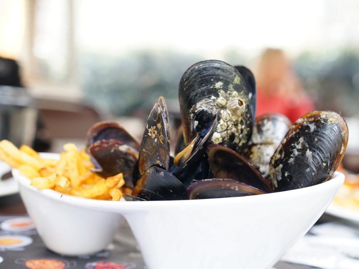 จานที่สาม คือ “Moules Frites” หอยแมลงภู่อบใส่หัวหอมใหญ่ตำรับเบลเยี่ยม ปกติแล้วจะเสิร์ฟมาพร้อมกับมันฝรั่งทอดปรุงรส (Pommes Frites) หอยแมลงภู่และมันฝรั่งทอดนั้นมีอยู่ทั่วไปในเบลเยียมเช่นเดียวกับเบอร์เกอร์และมันฝรั่งทอดในสหรัฐอเมริกา เรียกว่าเป็นอาหารท้องถิ่นของชาวเบลเยี่ยมที่นิยมรับประทานมากทั้งในประเทศ และทางตอนเหนือของฝรั่งเศส  หอยแมลงภู่เนื้อหวาน สดทุกตัว รสชาติกลมกล่อม หารับประทานได้ทั่วไป รสชาติไม่แตกต่างกัน