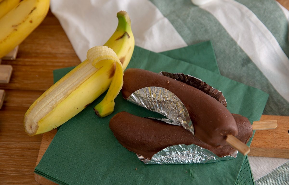 เมนูนี้สามารถชวนเด็กๆ มาช่วยกันทำ เพียงแค่หั่นกล้วยหอมแล้วเสียบไม้เตรียมไว้ จากนั้นก็ให้เด็กๆ เอาไปชุบกับช็อกโกแลตและนำไปแช่ตู้เย็นพอเริ่มแข็งตัว เพิ่มความอร่อยด้วยการโรยท็อปปิ้งตามความชอบได้เลย