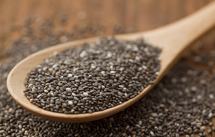 4. เมล็ดเจีย เป็นธัญพืชชนิดหนึ่งที่มีต้นกำเนิดจากเม็กซิโก พักหลังๆ มักจะมีคนนำมากินเพื่อลดน้ำหนัก เพราะมีส่วนช่วยเผาผลาญร่างกายได้อย่างดีเยี่ยม จากการให้โปรตีนสูงถึง 4.7 กรัม ต่อ 2 ช้อนโต๊ะ พร้อมกับมีไฟเบอร์สูงด้วย แนะนำให้ผสมลงในข้าวโอ๊ตหรือเครื่องดื่มต่างๆ เมื่อเมล็ดเจียโดนน้ำก็จะบานออกและกลายเป็นเนื้อเจลเหมือนพุดดิ้ง ทานแล้วอยู่ท้องได้ดี