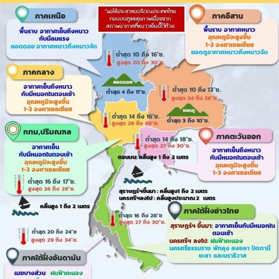 อากาศกรุงเทพมหานครยังคงหนาวในระดับ 17-18 องศา และเตือนระวังฝุ่นเกินมาตรฐาน 62 พื้นที่