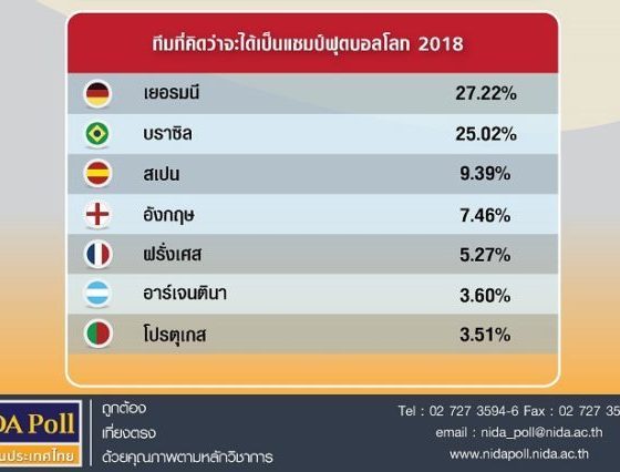 ‘นิด้าโพล’ เผยคนไทยเชียร์เยอรมันมากสุด-ลุ้นได้แชมป์บอลโลก2018