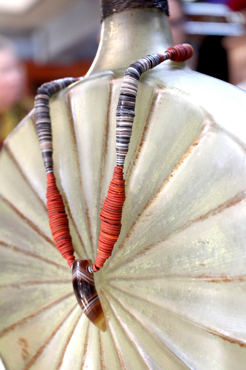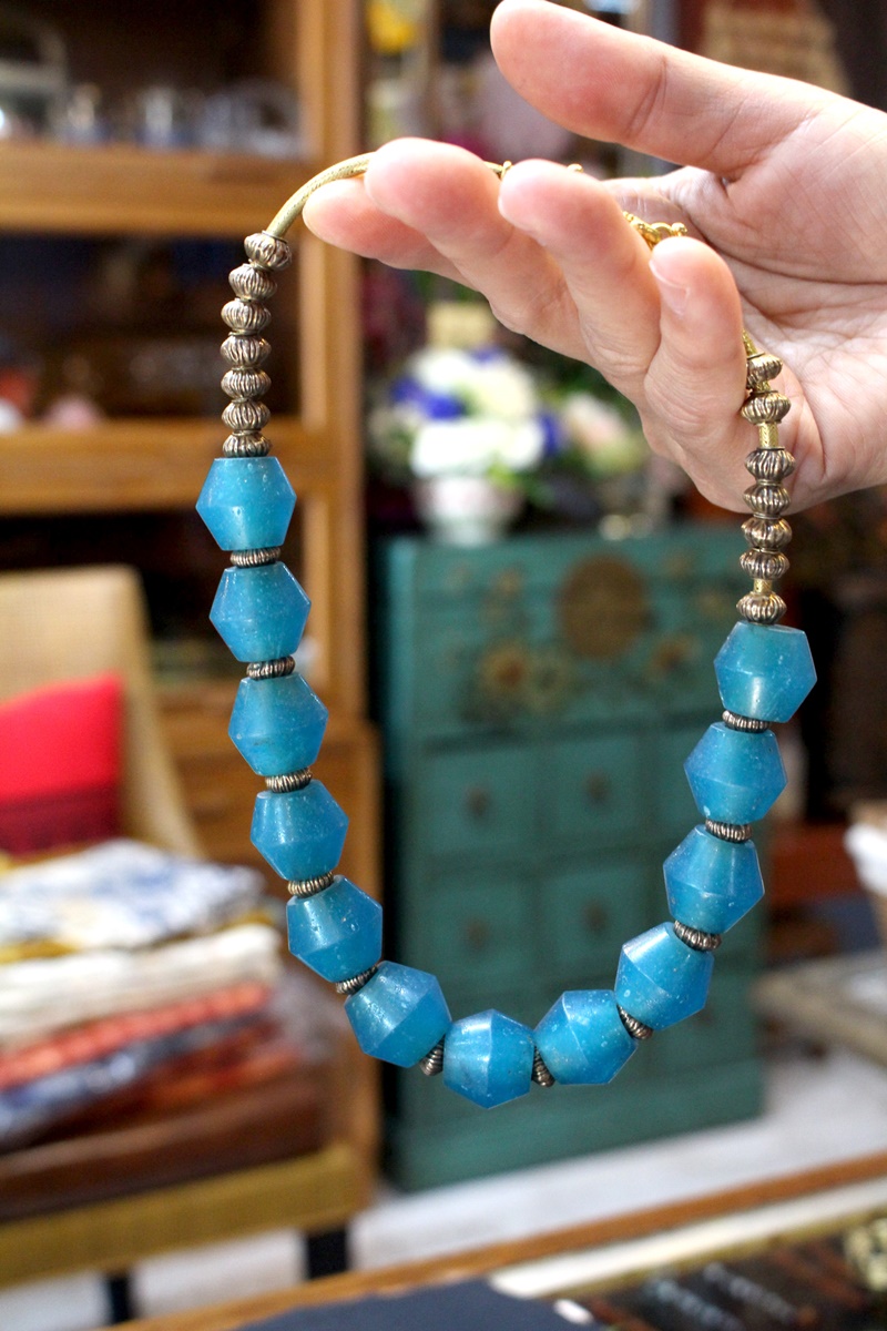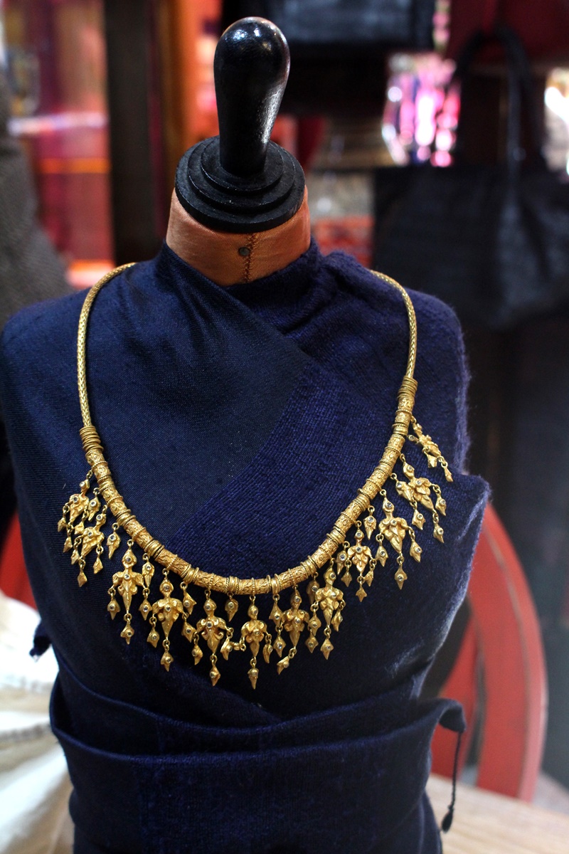คุณพรรณ เล่าว่าก่อนจะมาเปิดร้านเป็นของตัวเองเช่นทุกวันนี้ ได้เปิดร้านในตลาดบองมาร์เช่มาก่อน เธอและสามีทำร้านอัญมณีเครื่องประดับพร้อมกับขายจำพวกสร้อยลูกปัดโบราณ โดยสามีเป็นคนออกแบบและเสาะหาวัสดุมาทำ เลือกเฉพาะที่เป็นของโบราณจริงๆ สามารถพูดได้ว่าเวลานี้ลูกปัดที่จะใช้ทำเครื่องประดับไม่มีใครเก็บได้มากเท่าของที่เธอมีอยู่ตอนนี้ เพราะเก็บมานานกว่า 20 ปีแล้ว นอกจากเครื่องทอง เงิน และลูกปัดโบราณแล้ว ถึงตอนนี้ขยับมาขายของอื่นๆ ด้วย อาทิ ผ้าซิ่นและผ้าไทยโบราณ ซึ่งก็เป็นสิ่งที่เธอรักและชอบอีกเหมือนกัน