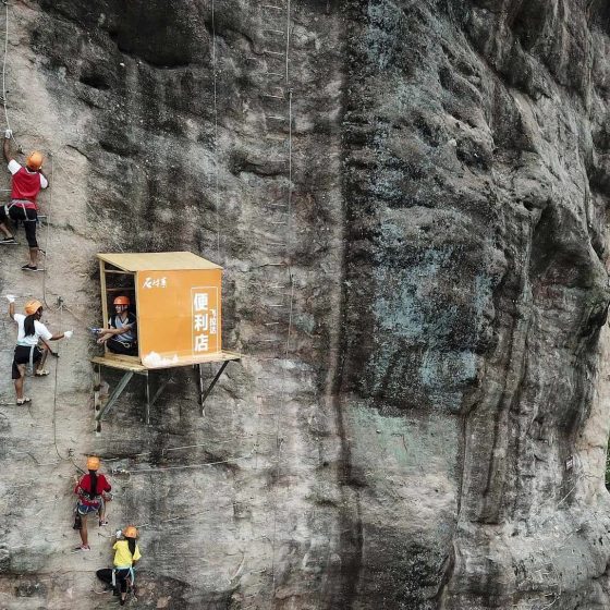 แพชชั่นเอามากๆ ทำธุรกิจได้ทุกที่! เปิดร้านขายของชำ กลางหน้าผาสูงชัน บริการนักปีนเขา