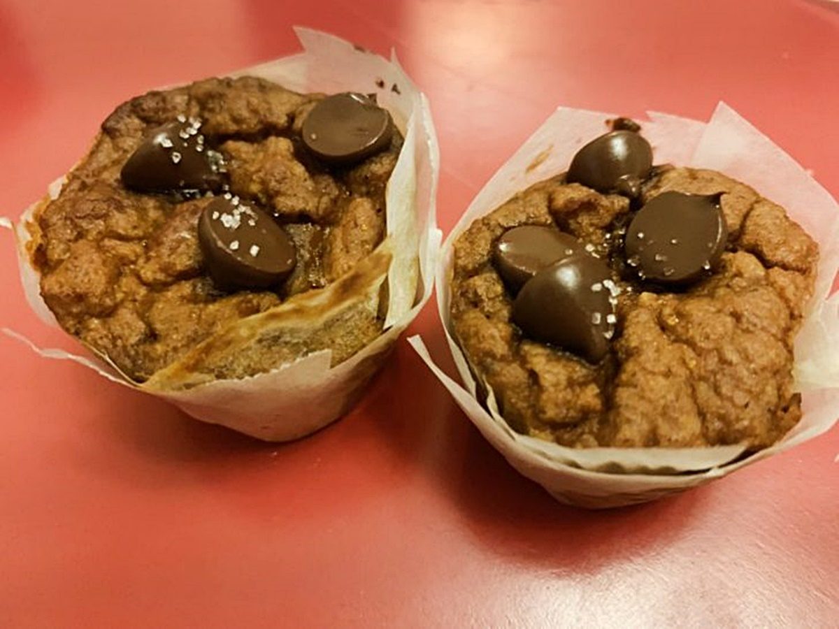 3. ตักส่วนผสม หยอดลงในพิมพ์แต่ละพิมพ์ โรยช็อกโกแลตชิพเพิ่มด้านบน ก่อนนำไปอบ 25-30 นาที หรือจนกว่าจะสุก ใช้ไม้เสียบลงตรงกลาง แล้วดึงออก ถ้ายังเปื้อนเป็นครีม ให้อบต่อ แต่ถ้าดึงไม้ออกแล้วไม้สะอาดดี คือสุกทั่วแล้วค่ะ
