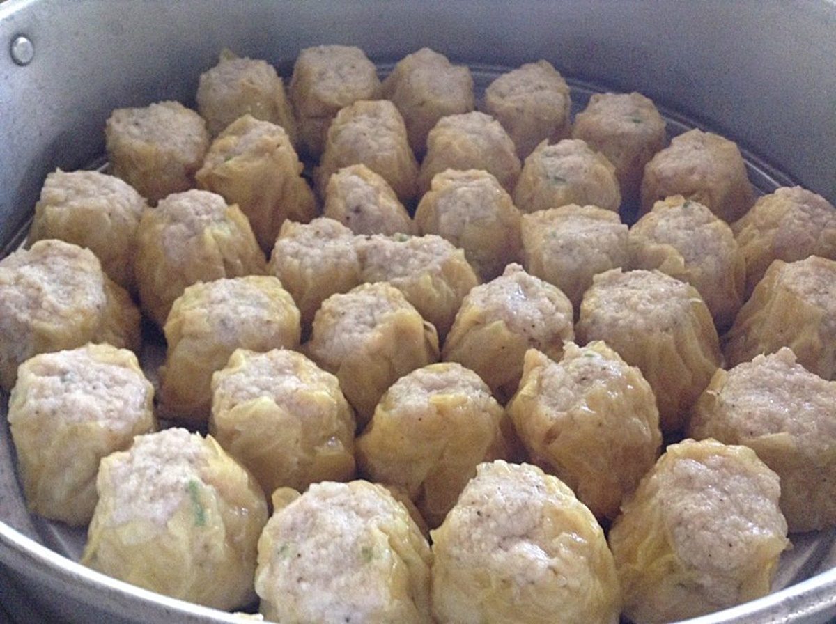 เมื่อนึ่งเสร็จ เปิดฝาซึ้งออกมาก็เห็นเป็นขนมจีบลูกโต ทานกับจิ๊กโฉ่ (ซอสเปรี้ยว) เข้ารสกันดีหนักหนา หรือจะทานคู่กับซอสดำ (ซอสหวาน) ก็ได้เหมือนกัน