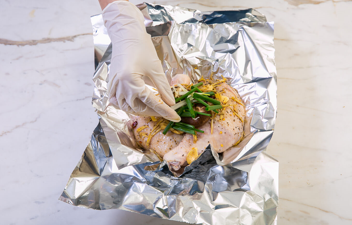 “ไก่นึ่งสมุนไพร” ไม่มีหม้อนึ่งแค่มีฟอยล์ก็ทำได้!