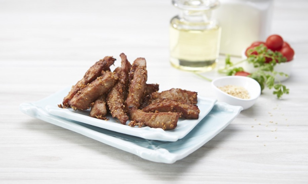 - หั่นสันนอกหมูหนาครึ่งนิ้ว กว้างครึ่งนิ้ว ยาว 4 นิ้ว
