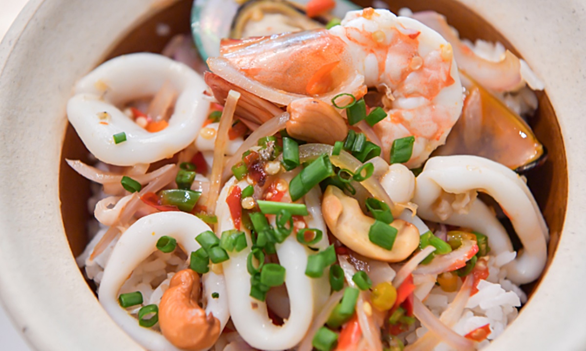 4. ตักยำทะเลลวก ราดลงบนข้าวสวยร้อนๆ โรยหน้าด้วยต้นหอมซอย รับรองแซ่บ!
