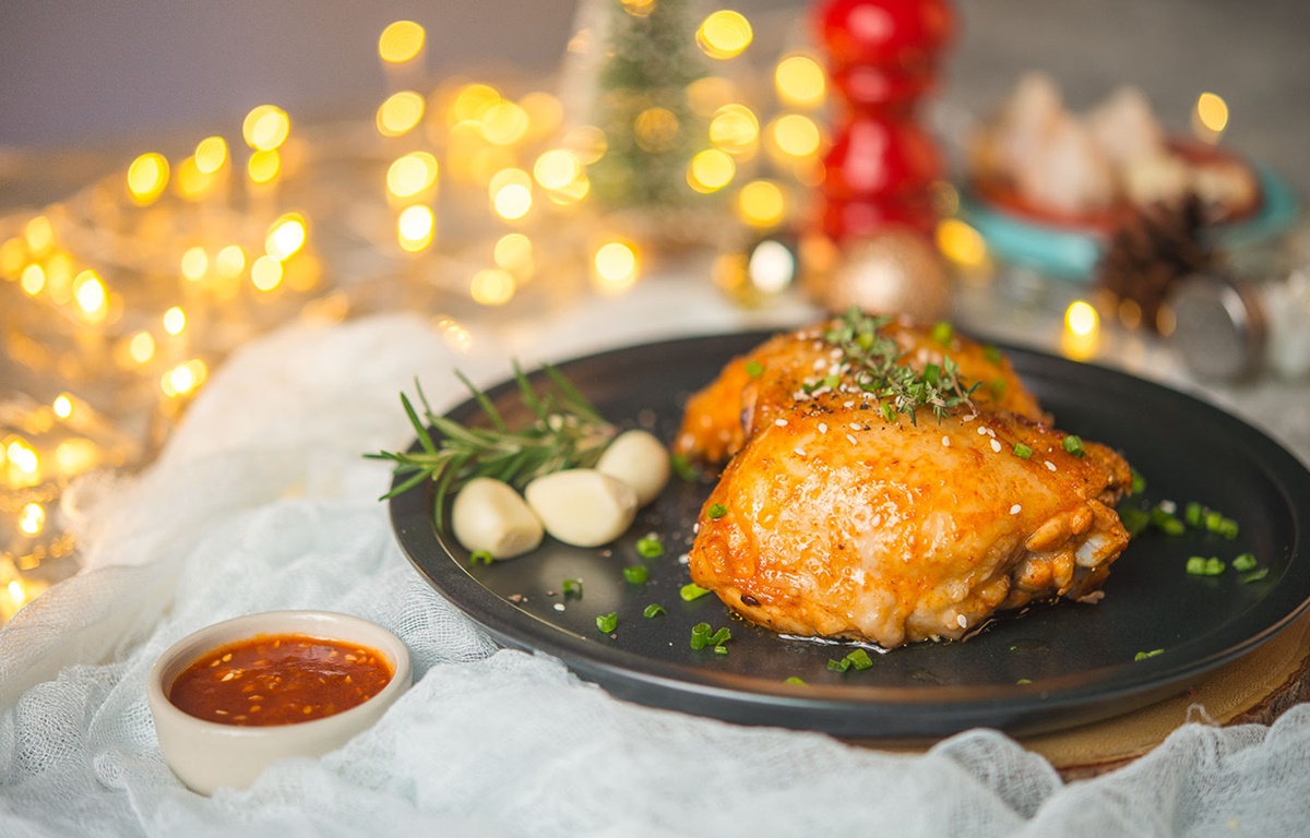 1. ทำความสะอาดสะโพกไก่ ก่อนนำไปปรุงในขั้นตอนต่อไป โดยหลังจากล้างไก่ด้วยน้ำสะอาดแล้ว ให้ใช้กระดาษซับน้ำให้แห้ง พักไก่ไว้ในจาน
