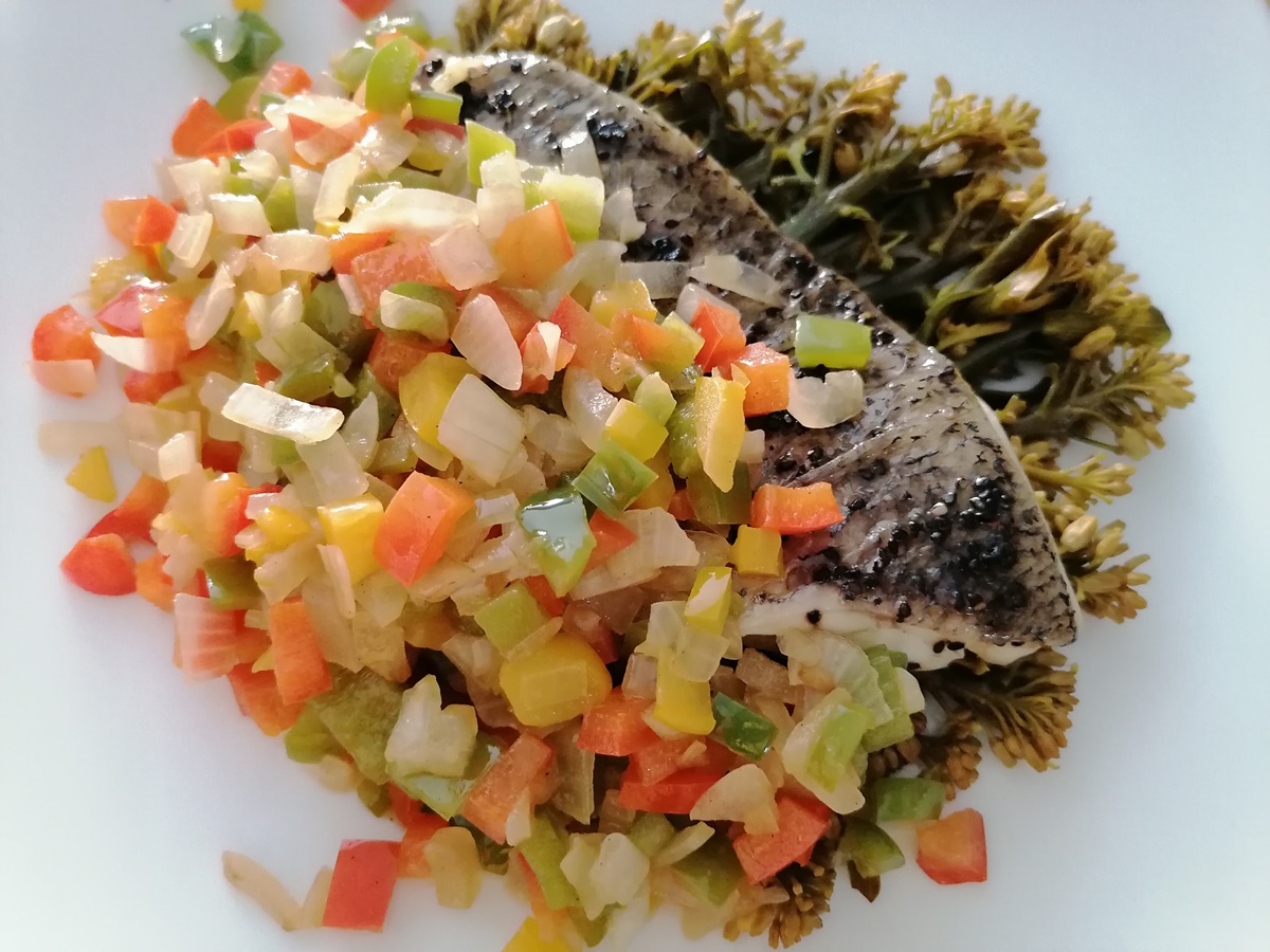 ปลากะพงนึ่ง ผัดพริกหวาน 3 สี Recipes สูตรอาหาร FacebookFacebookXTwitterLINELine เมนูสุขภาพนึ่งและผัด หลากสีด้วยพริกหวานแสนอร่อย ส่วนผสมปลากะพง 1 ชิ้นเกลือหิมาลัย 1/2 ชช.งาดำ 1/4 ชช.น้ำมันงา 1/2 ชช.ยอดอ่อนคะน้าฮ่องกง 15 อันขิง 2 แว่นพริกหวาน 3 สีหั่นลูกเต๋าน้ำซุปน้ำมันหมู 1 ชต.หอมใหญ่ 1/2 หัววิธีทำทุบก้านคะน้าพอบุบเรียงใส่จาน วางขิงซอยใส่งา น้ำมันงา เกลือคลุกตัวปลา วางใส่จานคะน้านึ่ง 20-30 นาที จนปลาและผักสุก ตักขึ้นพักไว้ตั้งกระทะใส่น้ำมัน ผัดหอมหัวใหญ่จนสุก ใส่พริกสามสีผัดพอสุก ปรุงรสเกลือหิมาลัย น้ำหญ้าหวานและเติมน้ำซุป ปิดฝาจนพริกสุกนิ่ม ตักราดปลา ที่มา : แม่บ้าน FacebookFacebookXTwitterLINELine