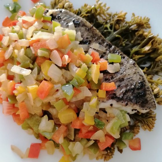 ปลากะพงนึ่ง ผัดพริกหวาน 3 สี