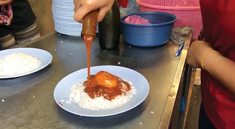 และจุดเด่นที่ทำให้ลูกค้าต่างถามไถ่กันมาก ทำไมต้องนำน้ำราดข้าวหมูแดงใส่ขวด ก่อนนำมาราดใส่จาน