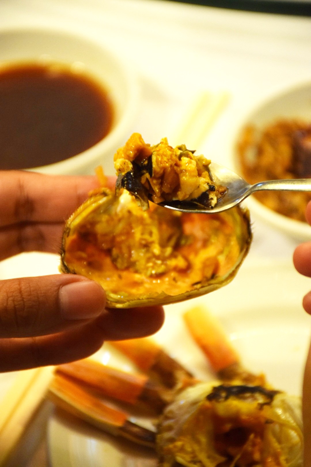 เอ๊า! ไม่รอช้า ถ่ายรูปเก็บสัก 3-4 ช็อตให้ไว ก่อนรสชาติของมันปูจะเสียอรรถรส เรารีบใช้ช้อนแซะมันเยิ้มๆ ทั้งก้อนร่อนออกจากกระดอง แล้วราดด้วยจิ๊กโฉ่ ที่มาจากต้นตำรับจีนแท้ๆ (ไม่ใช่แค่น้ำส้มสายชูผสมซีอิ๊วแบบที่อื่นๆ สวมรอยไว้) ทันทีที่มันของปูขนสัมผัสเข้ากับลิ้นรับรส บอกเลยว่า มันฟินอย่างเขาว่ากันจริงๆ ด้วย รสมันปูกลมกล่อมเมื่อผสมเคล้าคลุกกับจิ๊กโฉ่ หอมใบหม่อน นุ่มมันเยิ้มๆ ตัดรสเปรี้ยว เข้ากันดีกับความเผ็ดร้อนของขิงและพริก บรรยายไม่ถูก รู้แค่ว่ามันใช่มาก อยากให้ลองชิมกันดู ใช้เวลาไม่ถึง 2 นาที ทั้งมันปู ทั้งเนื้อจากก้ามปู ก็เข้าสู่กระเพาะอาหารเรียบร้อย เราจัดไปอีก 2-3 ตัว ฟินมาก ตบท้ายด้วยน้ำขิงร้อนๆ ที่จะช่วยดับความเย็นของมันปู เข้าตำราศาสตร์แบบหยินหยาง เพื่อไม่ให้มันจุกอก ปรับสมดุลร่างกาย นี่คือเคล็ดลับการกินปูที่ถูกวิธี