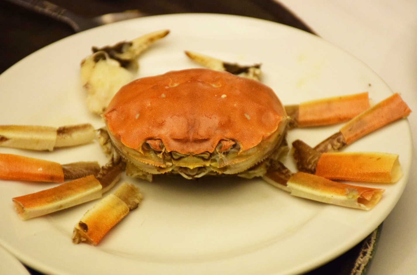 คุยเพลินๆ ไม่ทันไร ปูขนนึ่งร้อนๆ สีส้มสดที่ผ่านการแกะวางเรียงเรียบร้อยแล้ว ก็มาเสิร์ฟตรงหน้า