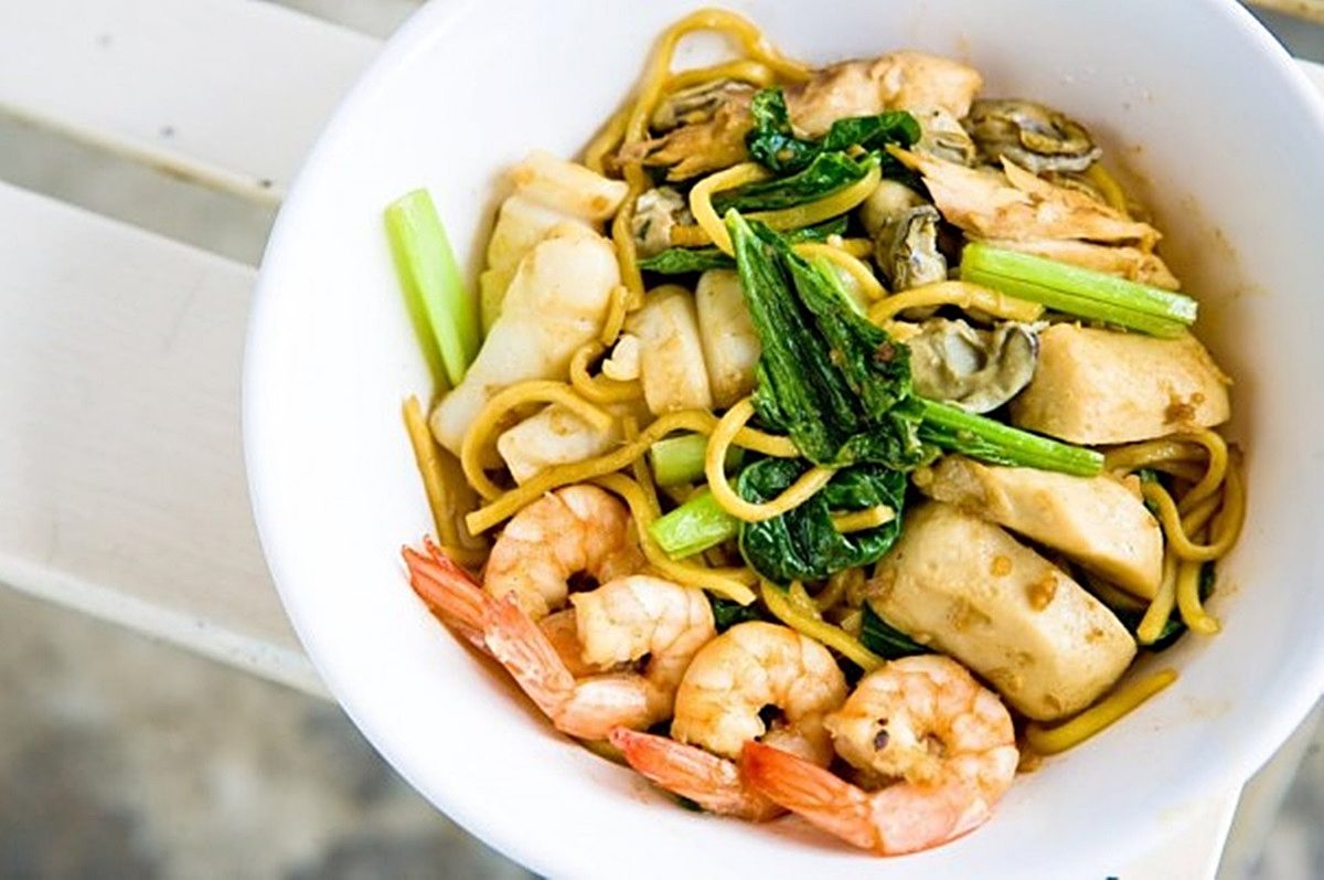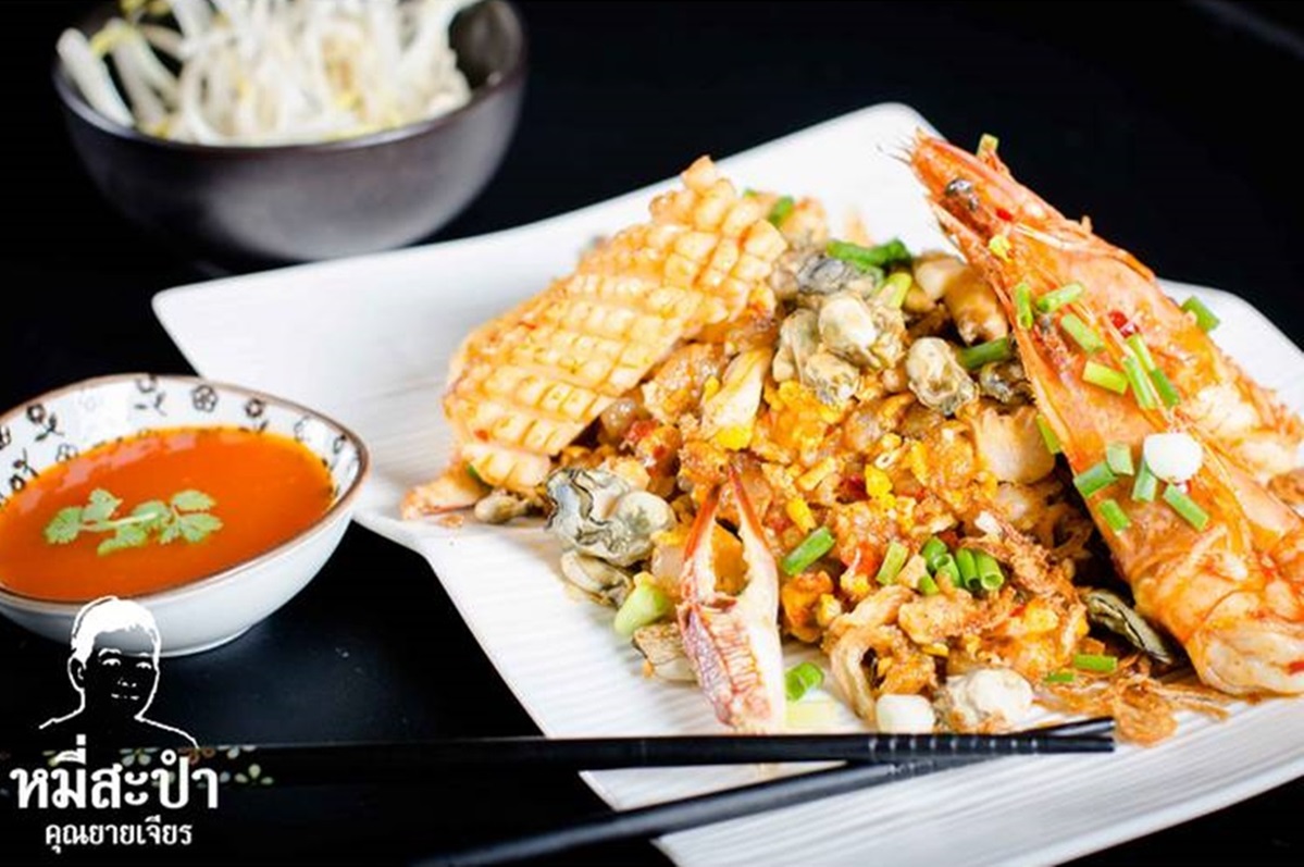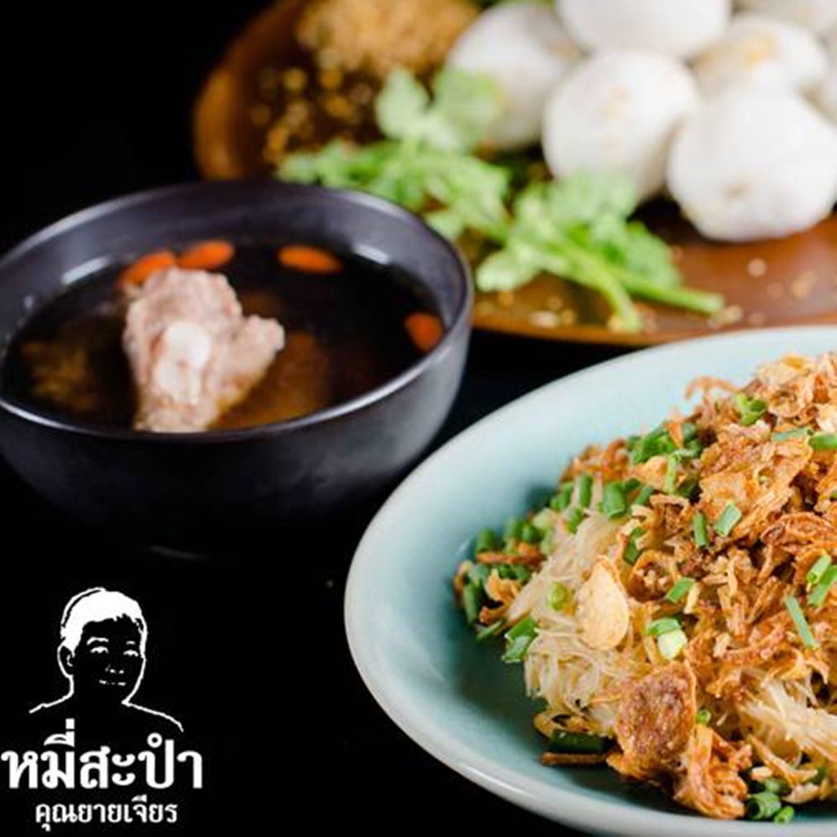 เมนูขึ้นชื่อของร้าน ไปถึงไม่สั่งกินไม่ได้ต้องนี่เลย..”หมี่สะปำ” หรือผัดหมี่ฮกเกี้ยนนี่เอง จะใช้เส้นหมี่เหลืองกลมที่มีขนาดใหญ่กว่าเส้นบะหมี่ทั่วไปมาผัด โดยหมี่ผัดฮกเกี้ยนทั่วไปจะใช้เนื้อหมูผัดกับเส้น แต่หมี่สะปำ เกิดจากคุณยายเจียรนำซีฟู้ดมาดัดแปลงใส่แทนเนื้อหมู ผัดมาแบบน้ำขลุกขลิกสไตล์จีน มีผักกวางตุ้งและไข่ลวกใส่มาให้ด้วย ใครชอบรสจัดต้องปรุงเพิ่ม แต่ออริจินัลรสออกนัว อร่อยไม่ต้องปรุงเลย หมี่สะปำคือจานแรกที่สร้างชื่อให้กับทางร้านจนกลายเป็นที่รู้จักแพร่หลาย