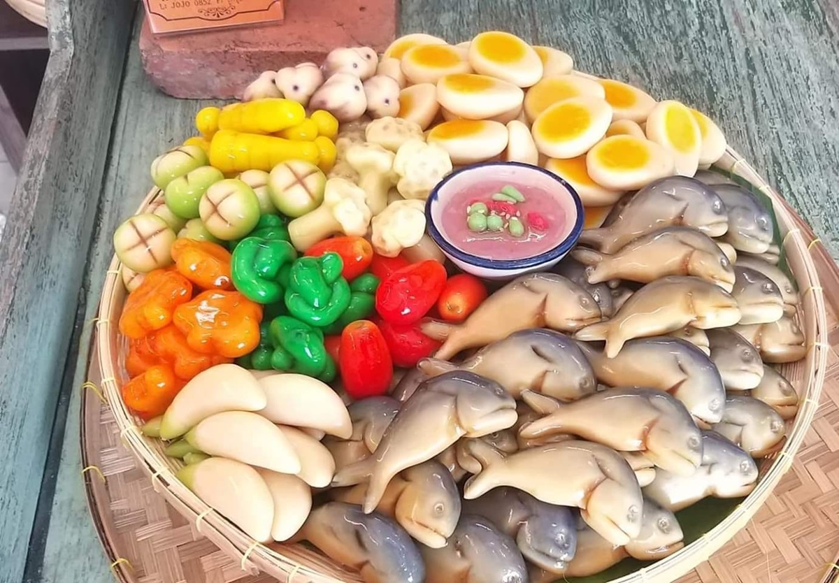 ลูกชุบของคุณโจ ไม่ใช่ลูกชุบพริก มะละกอ มะเขือม่วง หรือส้มจิ๋วธรรมดาๆ แต่เป็นลูกชุบรูปอาหารคาว ที่ปั้นเลียนแบบอาหารคาวหลายๆ ประเภท อย่าง หมูสะเต๊ะ ทอดมัน อาหารทะเล และ ชุดน้ำพริกปลาทู คือชุดที่สร้างชื่อให้ลูกชุบของเขาเป็นที่รู้จักในวงกว้าง