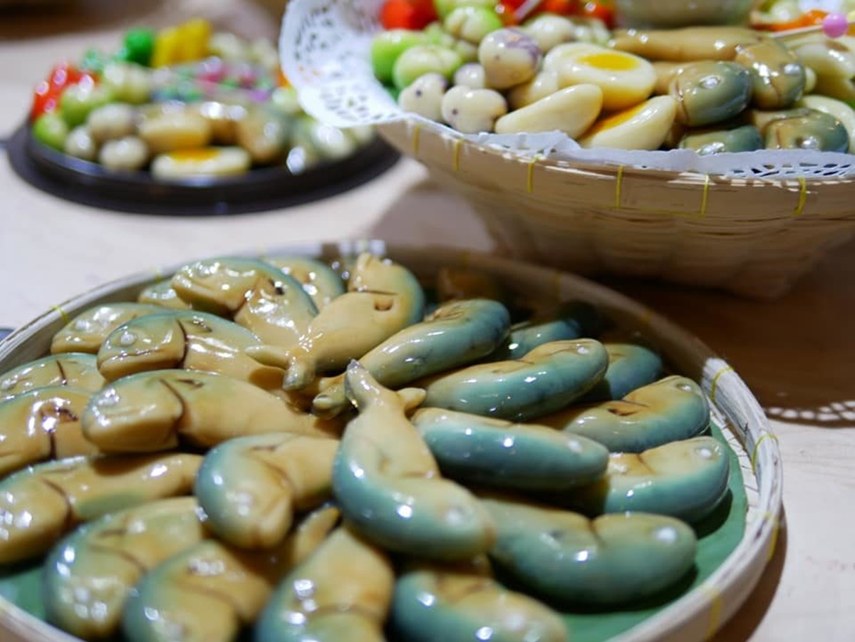 ลูกชุบชุดน้ำพริกปลาทู – ปัจจุบัน ลูกชุบมีวิวัฒนาการแตกต่างจากแบบดั้งเดิมไปมาก จากเมื่อก่อนที่ปั้นเป็นรูปทรงง่ายๆ ก็มีหลากหลายมากขึ้น มีโอกาสได้พูดคุยกับ คุณคชาทัช เตชินพัฒน์ หรือ คุณโจ เจ้าของธุรกิจ “ลูกชุบนายคชา” ที่ลูกชุบของเขานั้นไม่ใช่ลูกชุบธรรมดา แต่เป็นลูกชุบโคลนนิ่งอาหารสุดเหมือน เพิ่มความแปลกใหม่ให้กับวงการขนมไทยอย่างหนึ่ง
