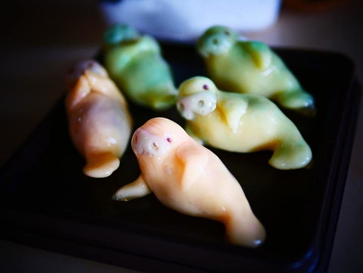 “ลูกชุบที่เห็นทั่วไป ส่วนใหญ่จะเป็นรูปผลไม้อะไรพวกนี้กันใช่ไหมครับ ผมก็มานั่งคิดว่าแล้วทำไมลูกชุบมันได้แค่รูปผลไม้ล่ะ แปลกๆ หน่อยก็พวกสัตว์ที่ปั้นง่ายๆ ทีนี้ลูกน้องที่ทำงานด้วยกันเขามาขอร้องให้ปั้นลูกชุบเป็นชุดน้ำพริกปลาทูให้หน่อย เขาจะเอาไปทำบุญ ผมเห็นว่ามันเป็นไอเดียที่ดี ก็เลยลองทำให้ กลายเป็นว่า มันคือการฉีกกรอบลูกชุบแบบเดิมๆ จนโดนคนในวงการขนมเขาว่ามาว่าเป็นลูกชุบนอกคอกไปซะงั้น” คุณโจ เล่ามาอย่างนั้น