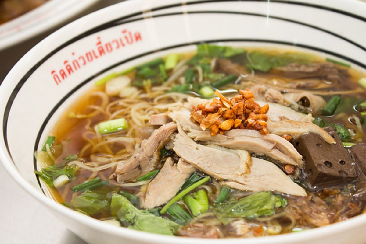 ก๋วยเตี๋ยวเป็ด เป็นอาหารอีกจานหนึ่งที่ได้รับความนิยมมากเช่นกัน ซึ่งไม่เพียงแต่เนื้อเป็ดเท่านั้น ส่วนอื่นๆ ของเป็ดสำหรับนักกินเป็ดแล้ว ก็จะมีคอเป็ด กระดูกเป็ด และเลือดเป็ด ซึ่งล้วนมีคุณค่าทางสารอาหารมากมาย ทั้งโปรตีน ไขมัน คาร์โบไฮเดรต แคลเซียม ฟอสฟอรัส วิตามิน B1, B2 สารอาหารเหล่านี้ช่วยในการเสริมสร้างปอดและไตให้ทำงานเป็นปรกติ และยังบำรุงโลหิต แก้ร้อนใน แก้อาการท้องเสีย รักษาอาการไอ เจ็บคอ ปวดฟัน และที่สำคัญยังช่วยเพิ่มสมรรถนะทางเพศอีกด้วย แม้จะมีความอร่อยอย่างมาก แต่ต้องระวังเพราะเป็ดมีปริมาณคลอเรสเตอรอลมากกว่าเนื้อสัตว์ชนิดอื่น เมื่อรู้จักที่มาของเป็ด เริ่มลงมือเสาะหาร้านเป็ดอร่อยมารับประทานกัน โดยเฉพาะ “ก๋วยเตี๋ยวเป็ด” มีร้านดังในตำนานรุ่นปู่ย่าตายายมาถึงรุ่นพ่อแม่และในปัจจุบัน เริ่มตั้งแต่…