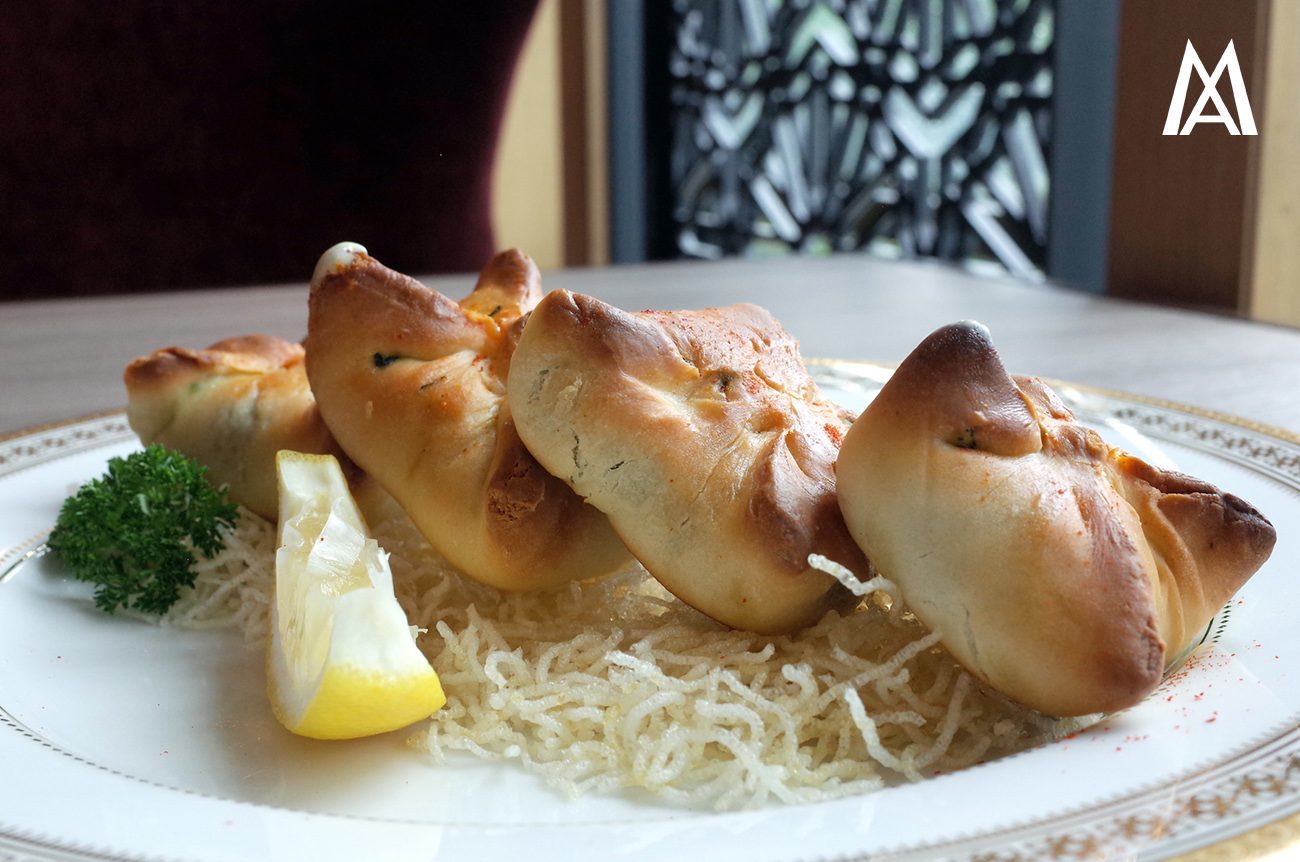 ซาโมซ่าผัก (Vegetable Samosa) ราคา 120 บาท ทำจากแป้งโฮลวีตอย่างดี บวกกับเครื่องเทศนานาชนิด นอกจากไส้ผักแล้ว ยังมีไส้แกะ และ ไส้ไก่ ที่สามารถสั่งผสมกันได้ในจานเดียว