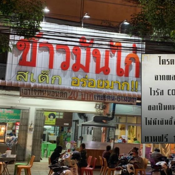 ตกงานจากโควิด กินฟรี!! ร้านข้าวมันไก่โอชิน แจกจริงคนละ1ห่อ