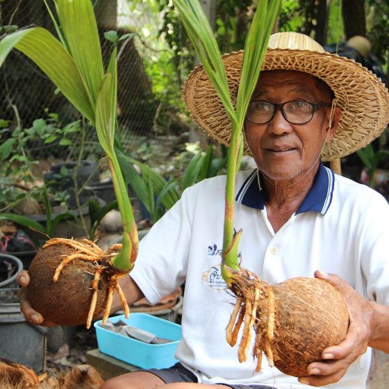 เปลี่ยน’มะพร้าวงอก’ไร้ค่า เพาะเป็น ‘บอนไซ’ แก้เหงาได้ตังค์