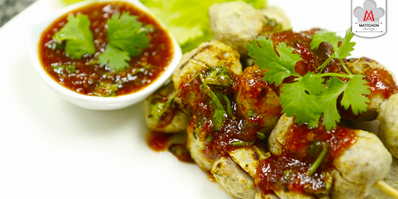 – การทำลูกชิ้นหมู น้ำจิ้มสำหรับทานกับเครื่องปิ้งย่าง และน้ำยำแบบซีฟู้ด