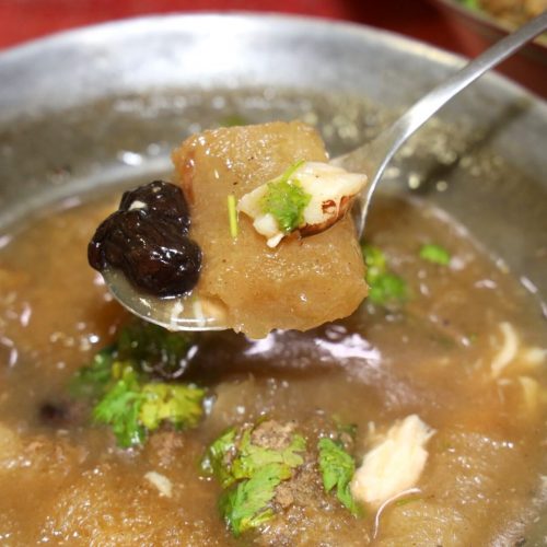 - กระเพาะปลาน้ำแดงเนื้อปู สอนเบสิกน้ำแกง ที่นำไปต่อยอดเป็นเมนูอื่นๆ ได้ น้ำซุปหอมละมุนของเนื้อปู และพริกไทย รสชาติหวานอ่อนๆ กำลังดี กระเพาะปลาชิ้นโต เนื้อนุ่ม ให้รสสัมผัสความกรึบ