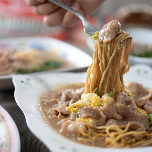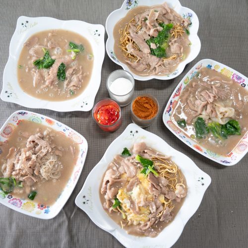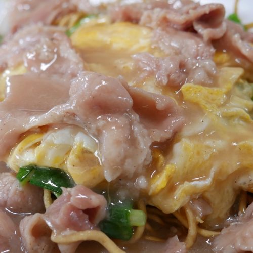- ราดหน้าหมูหมัก เส้นใหญ่ เส้นหมี่ หมี่กรอบ