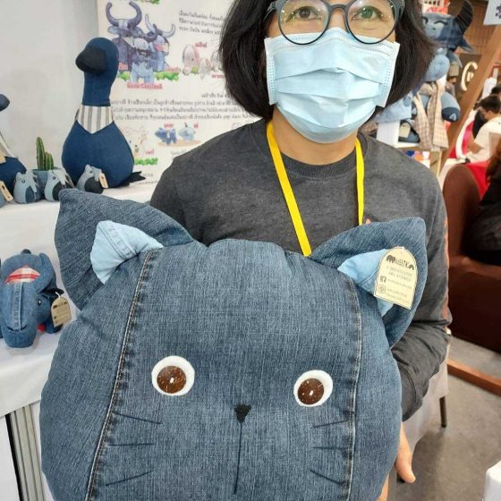- วิทยากรจะสาธิตและให้ผู้เรียนได้ลงมือปฏิบัติตามทุกขั้นตอน เริ่มต้นจากการก็อปปี้แบบ (แพทเทิร์น) การตัดเย็บผ้ายีนส์เพื่อให้เป็นหมอนอิงรูปสัตว์น่ารักๆ