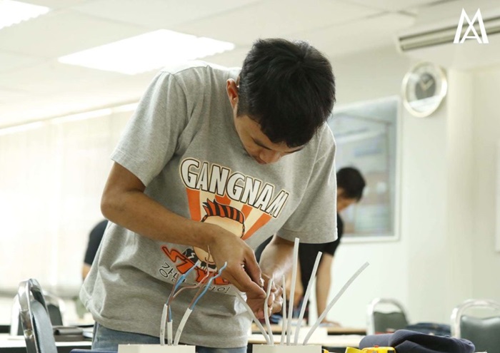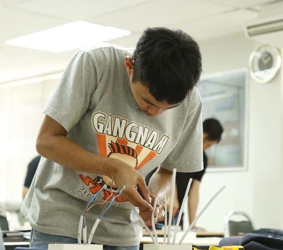 - ฝึกปฏิบัติการเดินสายไฟด้วยการตีกิ๊บ และเทคนิคต่างๆ