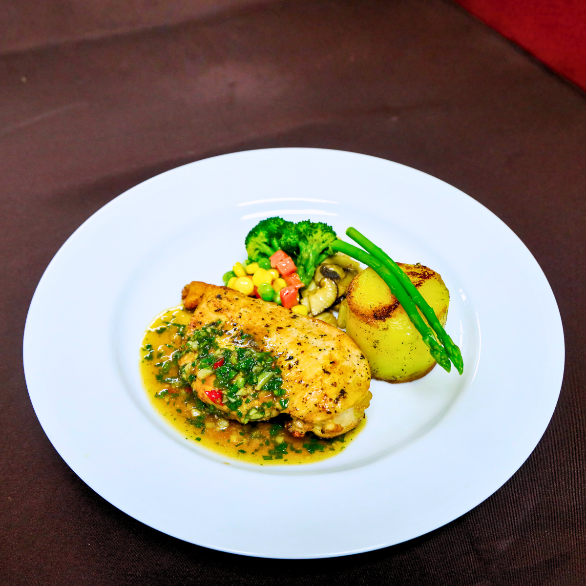 - มันฝรั่งฟองดองต์ (องค์ประกอบในจาน อกไก่)