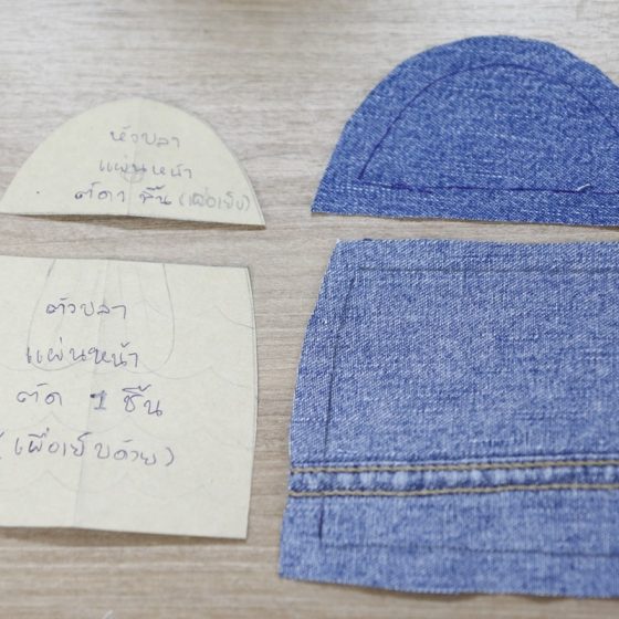 - สาธิตและฝึกปฏิบัติตัดเย็บ ครีบปลา หัวปลา และตัวปลาแผ่นหน้า