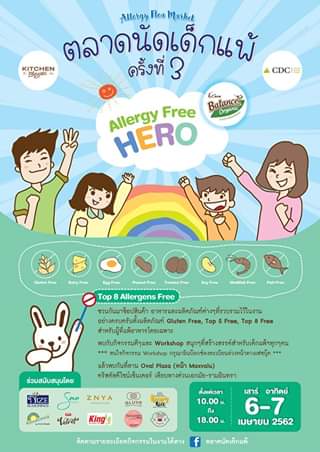 KitchenPlayer by แม่ตั้ม จับมือกับ CDC โดยมี บาลานซ์ออร์แกนิก เป็นผู้สนับสนุนหลัก ร่วมกันจัดงาน “ตลาดนัดเด็กแพ้ ครั้งที่ 3” ขึ้น ใน Theme : ALLERGY FREE HERO เพื่อรวบรวมเอาผลิตภัณฑ์สำหรับเด็กแพ้ฯ ไว้อย่างครบครัน ทั้งของใช้ วัตถุดิบในการปรุงอาหารและขนม Gluten free, Top 5 free, Top 8 free เด็กๆและผู้ที่แพ้อาหารสามารถเลือกทานเลือกช้อปได้ทุกร้าน เพราะทุกส่วนผสมผ่านการคัดสรรมาอย่างดี ผลิตภัณฑ์ส่วนใหญ่ปราศจากสารก่อภูมิแพ้ เช่น แป้งสาลี นมวัว ไข่ ถั่วลิสง ถั่วเปลือกแข็ง ถั่วเหลือง ปลาทะเล สัตว์ทะเลเปลือกแข็ง (กุ้ง หอย ปู) มางานนี้ … ไม่ซื้อตุนไม่ได้แล้ว