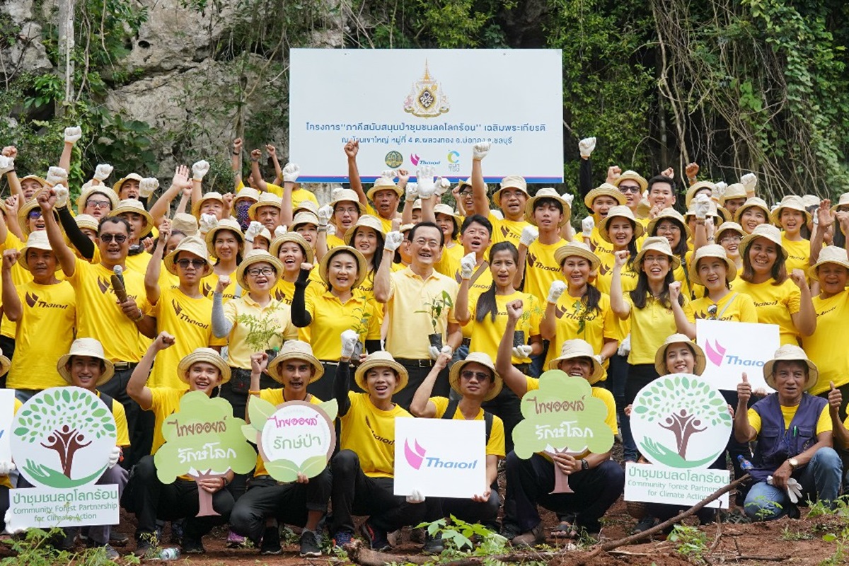 เมื่อเร็วๆ นี้ บริษัท ไทยออยล์ จำกัด (มหาชน) โดยคุณวิโรจน์ มีนะพันธ์ (ที่ 6 จากซ้าย แถวยืนแรก) รองกรรมการผู้จัดการใหญ่ด้านกำกับองค์กรและกิจการสัมพันธ์ ร่วมจัดทำโครงการภาคีสนับสนุนป่าชุมชนลดโลกร้อนเฉลิมพระเกียรติ กับ กรมป่าไม้ โดยคุณนันทนา บุณยานันต์ (ที่ 5 จากซ้าย แถวยืนแรก) ผู้อำนวยการสำนักจัดการป่าชุมชน และองค์การบริหารจัดการก๊าซเรือนกระจก (อบก.) โดย ดร.พฤฒิภา โรจน์กิตติคุณ (ที่ 4 จากขวา แถวยืนแรก) ผู้อำนวยการสำนักวิเคราะห์และติดตามประเมินผล พร้อมคณะผู้บริหาร พนักงานจิตอาสา กลุ่มไทยออยล์ คณะกรรมการป่าชุมชนบ้านเขาใหญ่ ตลอดจนตัวแทนชาวบ้านกว่า 350 คนเข้าร่วมกิจกรรมในโครงการฯ ณ บ้านเขาใหญ่ หมู่ที่ 4 ต.พลวงทอง อ.บ่อทอง จ.ชลบุรี