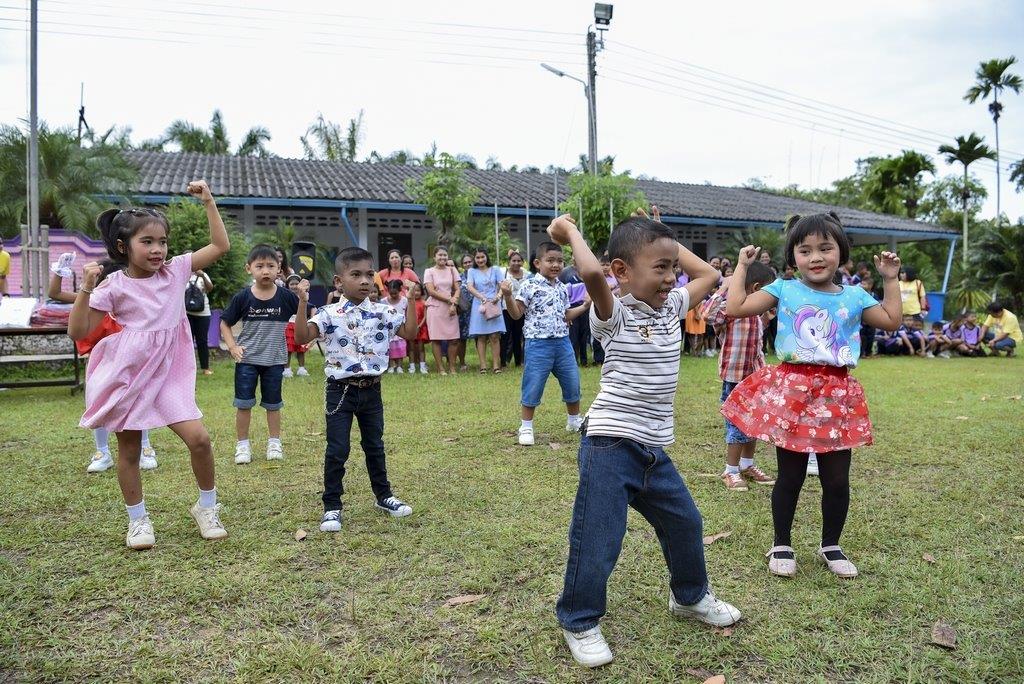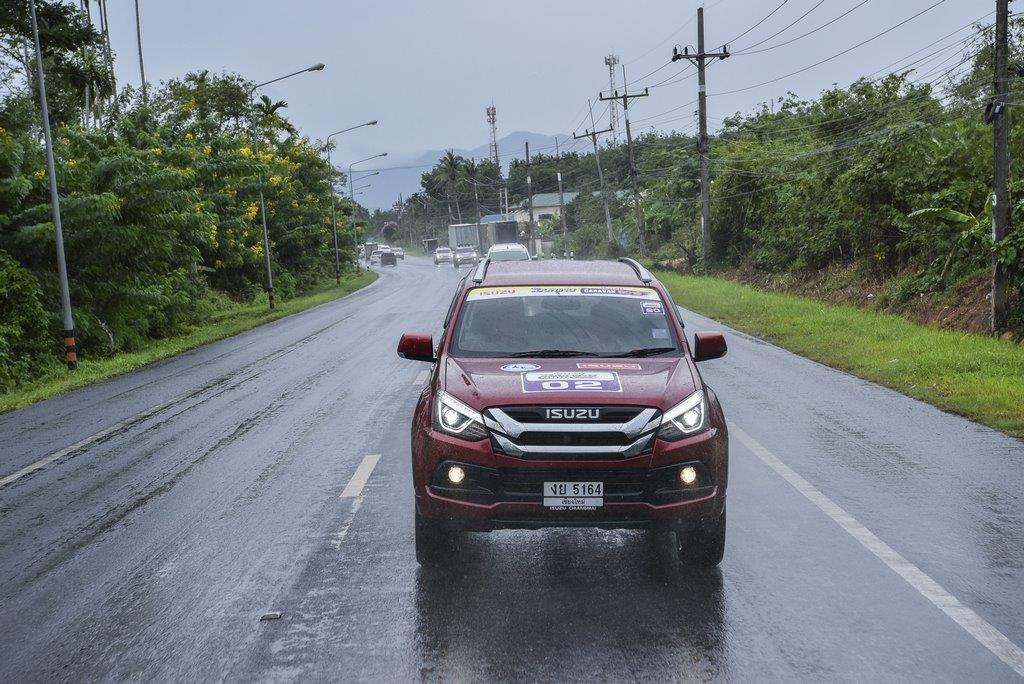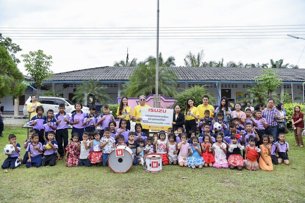 จุดหมายแรก ขบวนอีซูซุคาราวานสัญจรมุ่งหน้าสู่โรงเรียนบ้านหนองปรือ อ.ห้วยยอด จ.ตรัง โดยมีน้องๆ นักเรียนมาให้การต้อนรับด้วยการแสดงเต้นประกอบเพลงแจกความน่ารักสดใส พร้อมรับมอบเงินบริจาคและเครื่องดนตรีดุริยางค์ ทำเอายิ้มแก้มปริกันถ้วนหน้าทั้งผู้รับและผู้ให้ จากนั้นมุ่งหน้าสู่จุดหมายที่สอง เพื่อกราบสักการะพระพุทธรูปคู่เมืองตรัง ณ วัดภูเขาทอง อ.เมือง จ.ตรัง