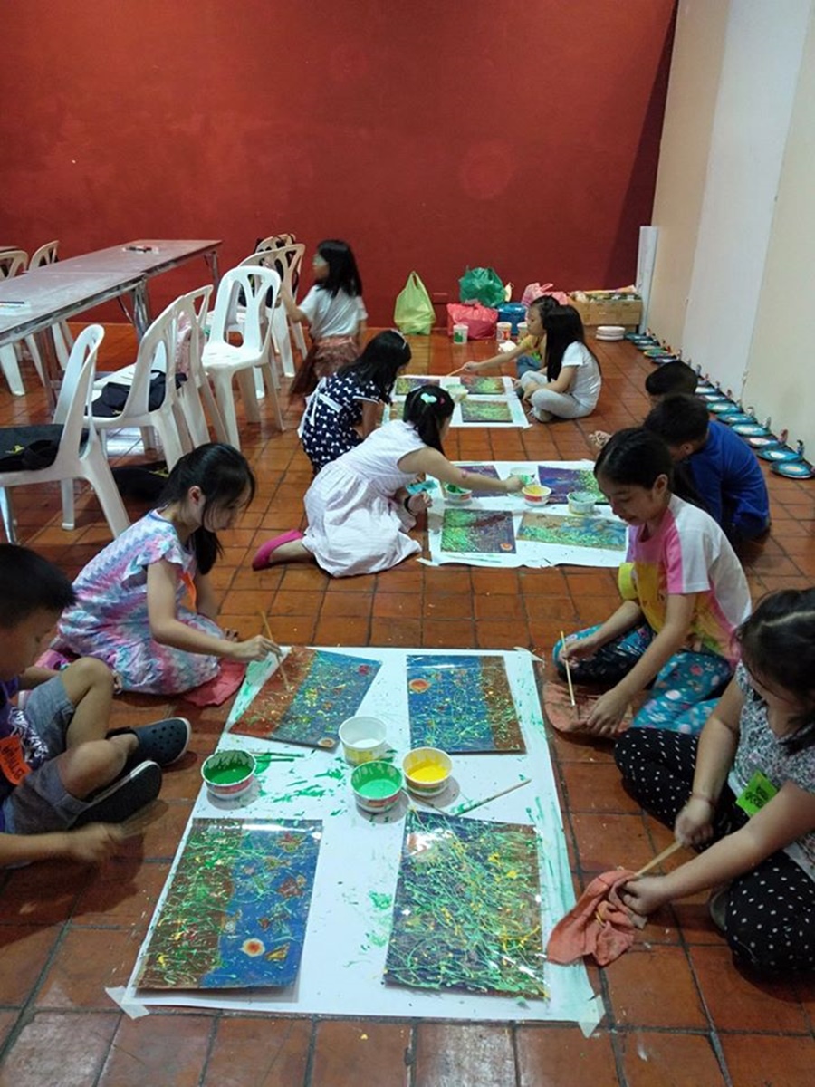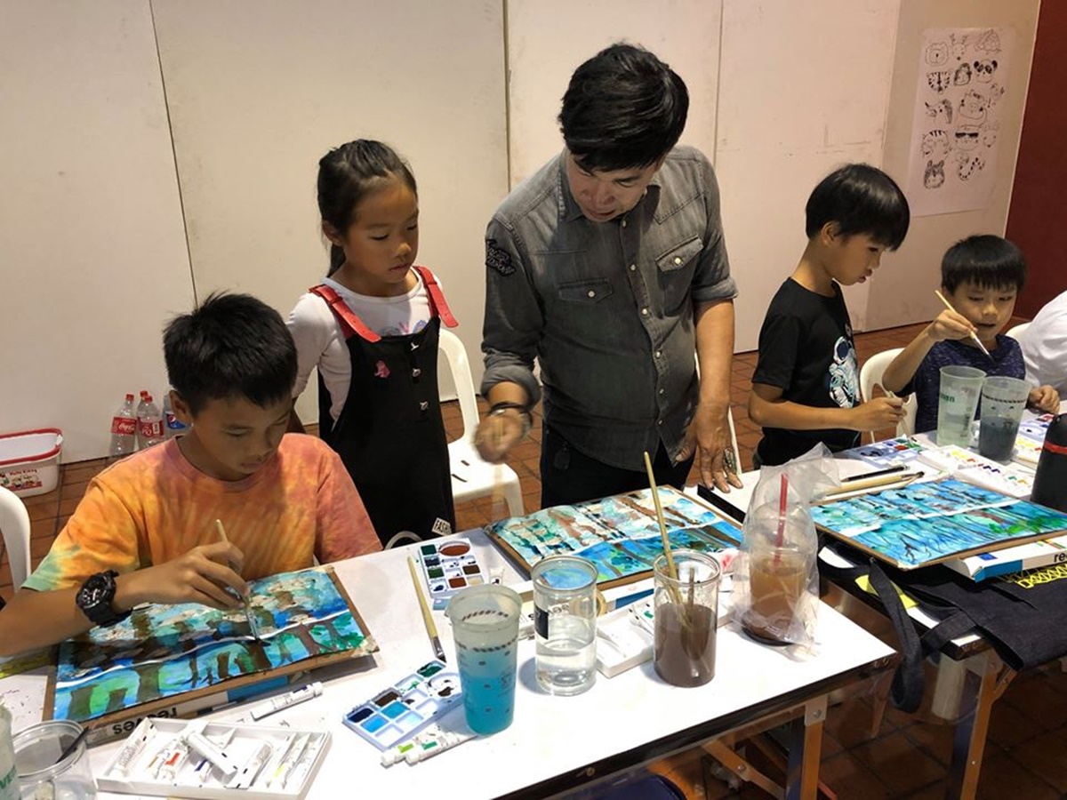 การวาดสีน้ำ เรียนพื้นฐานการวาดภาพสีน้ำ ตั้งแต่การผสมสี การวางโครงร่างของภาพ โดยสอดแทรกการลงสีด้วยเทคนิคต่างๆ เช่น การระบายสีเปียกบนเปียก เปียกบนแห้ง การระบายเคลือบ แบ่งเป็นระดับ ป.๔– ป.๖ จำนวน ๒๐ คน และระดับ ม.๑ ขึ้นไป – บุคคลทั่วไป จำนวน ๒๐ คน