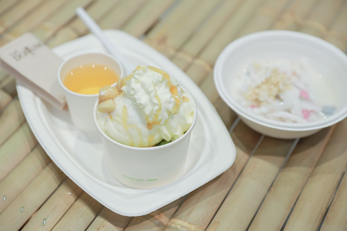 จากนั้นชวนแวะร้าน “คาเฟ่ดอยตุง” (Café DoiTung) พร้อมเสิร์ฟกาแฟดอยตุงรสชาติเข้มข้นหอมอร่อย ในภาชนะแก้ว และหลอดกระดาษย่อยสลายได้ตามธรรมชาติ พบกับเมนูพิเศษ “Love Me Back” ที่ “คาเฟ่ดอยตุง” สร้างสรรรค์เพื่อต้อนรับเทศกาลแห่งความรัก ดื่มกาแฟแล้ว ไปเดินชมโซน ต้นไม้ ดอกไม้ ที่คัดสรรมาให้เลือกไปประดับตกแต่งที่บ้าน อาทิ กล้วยไม้รองเท้านารี ไฮเดรนเยีย คล้าย ว่านสี่ทิศ แคคตัส ไม้อวบน้ำ ฯลฯ รวมไปถึง ผักปลอดสารจากดอยตุง สตรอว์เบอร์รี่พันธุ์ลูกผสม ตลอดจนเมล็ดพันธุ์ไม้ดอกไม้ประดับ ที่นำมาจำหน่าย ช้อปฯ กันต่อกับสินค้าอาหารแปรรูป ผลิตภัณฑ์ จากโครงการพัฒนาดอยตุงฯ พร้อมลิ้มรสอาหารจากร้านอาหารเหนือ “ครัวตำหนัก” โดยเชฟคนดัง ป้าเครือ-เครือวัลย์ กาบุญก้ำ ผู้ที่เป็นต้นเครื่องประกอบอาหารถวาย สมเด็จพระศรีนครินทราบรมราชชนนี ที่ชวนลองเมนูใหม่ล่าสุด “ข้าวซอยน้อยทรงเครื่อง” ของชาวไทยใหญ่ รวมไปถึงเมนูเด็ด สปาเก็ตตี้ไส้อั่ว แกงฮังเล ข้าวซอยไก่ ขนมจีนน้ำเงี้ยว เห็ดอ้อนดอย ไส้อั่ว และน้ำพริกต่างๆ นอกจากนี้ยังมีเมนูขนมหวาน ไอศกรีมอาโวคาโด และ บัวลอยมะพร้าวอ่อน ให้ได้เลือกลิ้มลอง นอกจากนี้ยังมีสินค้าหัตถกรรม เสื้อผ้าแฟชั่น ผ้าพันคอ ที่ผสานภูมิปัญหาของกลุ่มชาติพันธุ์กับการดีไซน์ลายผ้าไว้ได้อย่างสวยงาม