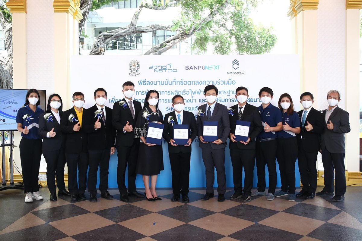 นายวิทยา ยาม่วง อธิบดีกรมเจ้าท่า พร้อมด้วย ดร.จุลเทพ ขจรไชยกูล ผู้อำนวยการศูนย์เทคโนโลยีโลหะและวัสดุแห่งชาติ (เอ็มเทค) สำนักงานพัฒนาวิทยาศาสตร์และเทคโนโลยีแห่งชาติ (สวทช.), นางสมฤดี ชัยมงคล ประธานเจ้าหน้าที่บริหาร บริษัท บ้านปู จำกัด (มหาชน) และบริษัท บ้านปู เน็กซ์ จำกัด และ นายนำชัย สกุลฎ์โชคนำชัย ประธานกรรมการบริษัท สกุลฎ์ซี อินโนเวชั่น จำกัด ร่วมลงนามบันทึกข้อตกลงด้าน ‘การพัฒนาการออกแบบ การผลิต และมาตรฐาน สำหรับเรือไฟฟ้าที่มีคุณภาพ เพื่อความปลอดภัยในการขนส่งทางน้ำ และส่งเสริมการพาณิชยนาวี’ เพื่อยกระดับมาตรฐานการผลิตเรือไฟฟ้า เพิ่มขีดความสามารถในการแข่งขันทั้งระดับประเทศ และนานาชาติ นำไปสู่การขับเคลื่อนอุตสาหกรรมเรือไฟฟ้าให้เติบโตอย่างยั่งยืน ณ กรมเจ้าท่า เมื่อเร็วๆ นี้