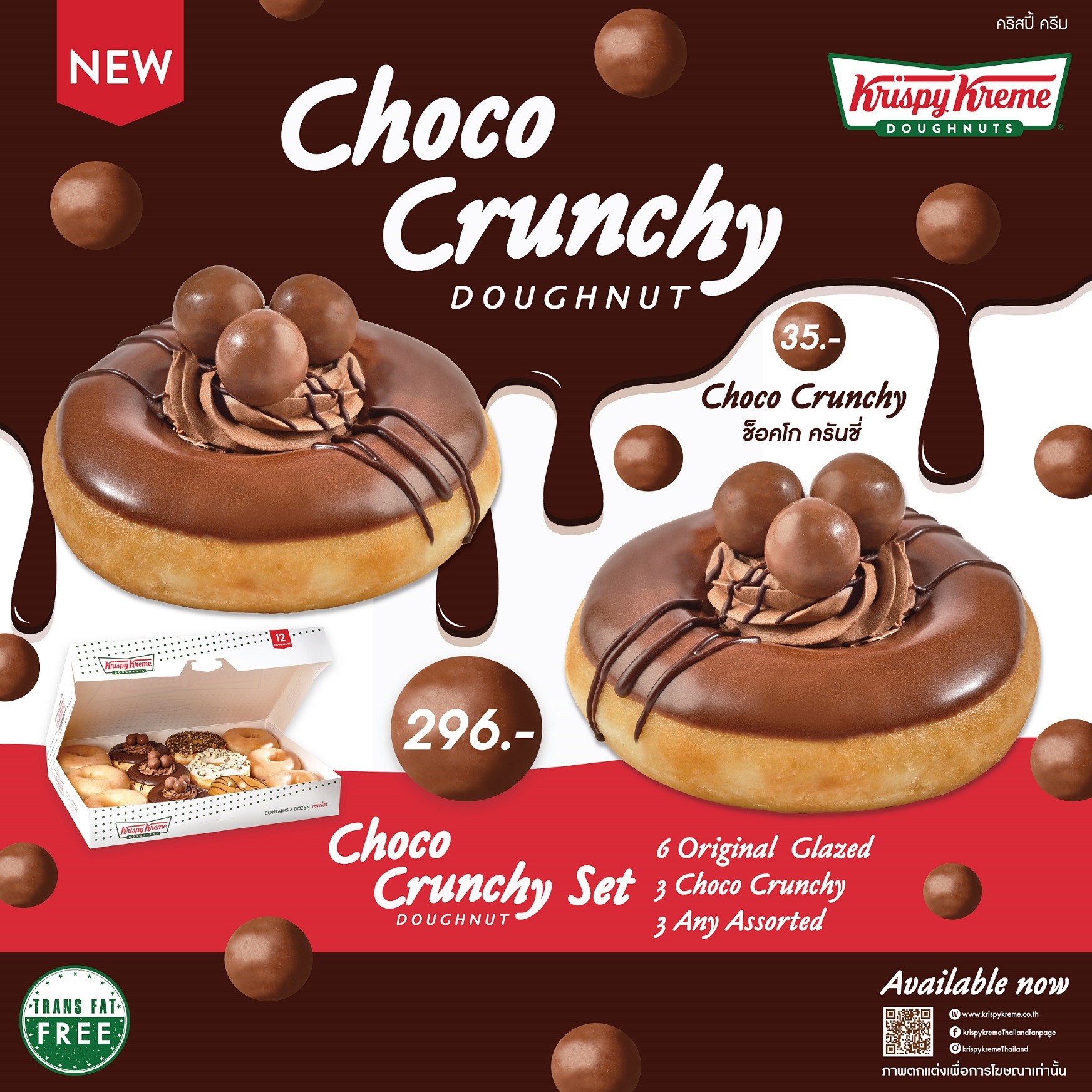 คริสปี้ ครีม (Krispy Kreme) โดนัทสูตรลิขสิทธิ์อันดับ 1 ที่ครองใจคนทั่วโลก พร้อมส่งความอร่อยที่ทุกคนรอคอยกับ  ‘ช็อกโก ครั้นชี่ โดนัท’  โดนัทนุ่มออริจินัลเกลซสุดฮิต  เคลือบด้วยช็อกโกแลตเข้มข้น  ท็อปด้วยบัตเตอร์ครีมช็อกโก หวาน หอม ละมุน ตามด้วยมอลทีเซอร์บอล ช็อกโกแลตบอลกรุบกรอบ ที่ใครๆ ก็รัก ให้ได้อร่อยกันแบบไม่ยั้ง ในราคาเพียงชิ้นละ 35 บาท หรือแบบเซ็ทในราคา 296 บาท