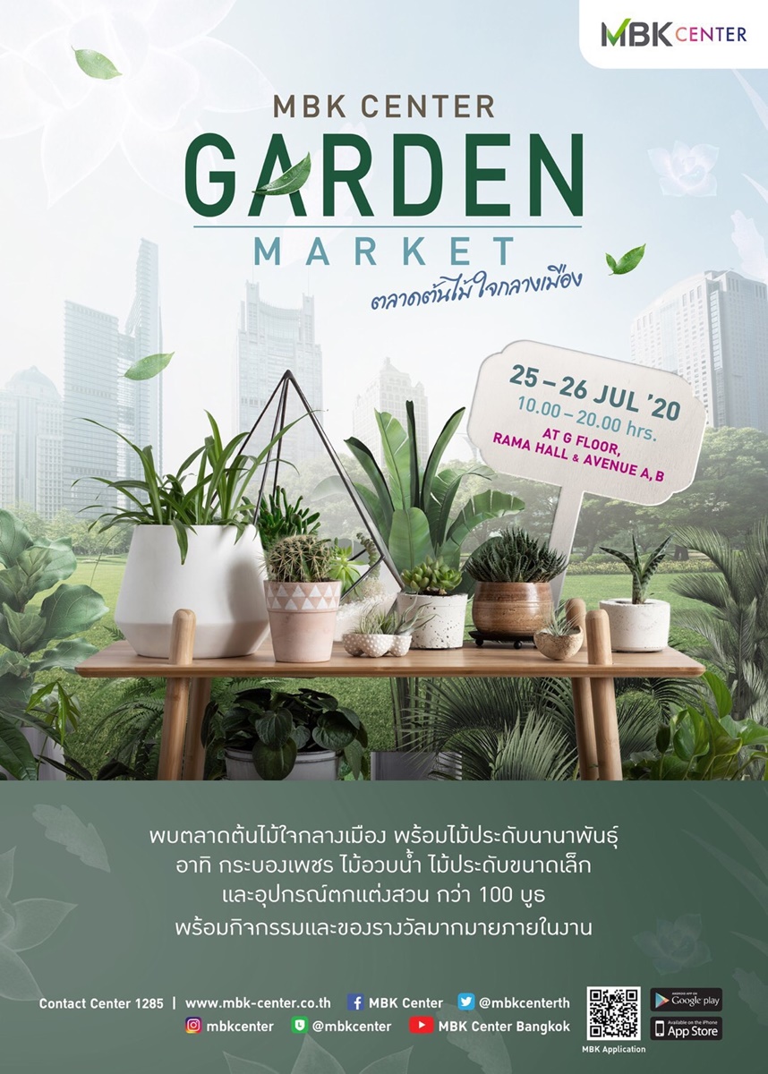 เทรนด์ปลูกต้นไม้และแชะแชร์รูปคู่กับต้นไม้กำลังมาแรงจนหยุดไม่อยู่ ใครอยากอินเทรนด์รักษ์โลกแบบ New Normal มองหาต้นไม้ไปปลูกชิคๆ คูลๆ เติมความสดชื่นในบ้านหรือที่ทำงาน ต้องไม่พลาดงาน MBK CENTER GARDEN MARKET เนรมิตตลาดต้นไม้ใจกลางเมือง ณ ศูนย์การค้าเอ็ม บี เค เซ็นเตอร์ ซึ่งได้รวบรวมไฮไลต์ส่วนหนึ่งมาให้เตรียมวางลายแทงกันก่อนไปช้อปจุใจรื่นรมย์กับความเขียวขจีสูดโอโซนกันแบบฟินๆ ระหว่างวันที่ 25-26 กรกฎาคม 2563 บริเวณชั้น G ลานอเวนิว โซน A,B และ ลานรามา ฮอลล์ (RAMA HALL) ตั้งแต่เวลา 10.00 น.- 20.00 น.