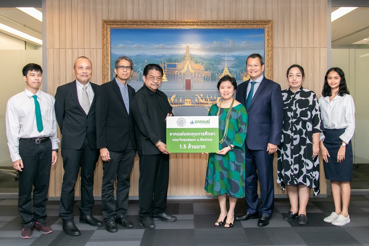 อาคเนย์ ร่วมส่งต่อความรู้ มอบทุนการศึกษา คณะจิตรกรรม ม.ศิลปากร ประชาสัมพันธ์ FacebookFacebookXTwitterLINELine นายโชติพัฒน์ และนางอาทินันท์ พีชานนท์ ประธานเจ้าหน้าที่บริหารและรองประธานเจ้าหน้าที่บริหารอาวุโส อาคเนย์ กลุ่มธุรกิจประกันและการเงิน ร่วมส่งต่อความรู้ มอบทุนการศึกษาให้กับนักศึกษา คณะจิตรกรรมประติมากรรมและภาพพิมพ์ มหาวิทยาลัยศิลปากร โดยได้รับเกียรติจากศาสตราจารย์เกียรติคุณ ปรีชา เถาทอง ศิลปินแห่งชาติ สาขาทัศนศิลป์ (จิตรกรรม) พ.ศ.2552 พร้อมคณะอาจารย์และตัวแทนนักศึกษา เป็นผู้รับมอบ ซึ่งเป็นหนึ่งในกิจกรรมเพื่อสังคมด้านสนับสนุนการศึกษาแก่เยาวชนให้มีความรู้ความสามารถและสืบสานศิลปวัฒนธรรมไทยต่อไป FacebookFacebookXTwitterLINELine