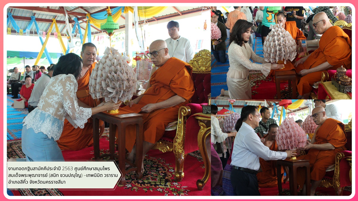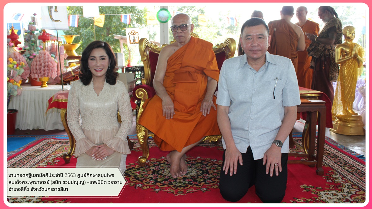 งานกฐินสามัคคีประจำปี 2563 ของศูนย์ศึกษาสมุนไพรสมเด็จพระพุฒาจารย์ (สนิท ชวนปญฺโญ) –เทพนิมิต วราราม จัดขึ้นโดยมีสมเด็จพระพุฒาจารย์ (สนิท ชวนปญฺโญ) กรรมการมหาเถรสมาคม เจ้าคณะใหญ่หนตะวันออก เจ้าอาวาสวัดไตรมิตรวิทยาราม ประธานฝ่ายสงฆ์ คุณกรณ์สรวง ภิรมย์ รองผู้อำนวยการสถาบันคุณวุฒิวิชาชีพ รักษาการในตำแหน่งผู้อำนวยการ สำนักส่งเสริมคุณวุฒิวิชาชีพนานาชาติ , พล.ต.ต.ชำนาญ ชำนาญเวช , คุณฉฎาณิศา ชำนาญเวช และคณะ ร่วมเป็นเจ้าภาพใหญ่ พร้อมทั้งถวายเครื่องไทยธรรม พร้อมกันนี้ยังมีเจ้าภาพร่วมจากหลากหลายหน่วยงานด้วยกัน อาทิเช่น บจก. ไทย อินดิเพนเดนท์ เน็ตเวิร์ก เอเยนซี่ – กลุ่มบมจ. กันตนา กรุ๊ป, พนักงานกลุ่ม บมจ. อมรินทร์พริ้นติ้งแอนด์พับลิชชิ่ง , สายบมจ. ไอ.ซี.ซี. อินเตอร์เนชั่นแนล – พนักงานกลุ่มบริษัทในเครือสหพัฒนฯ ตลอดจนสายศิษยานุศิษย์ต่างๆ ทั้งในประเทศและต่างประเทศ โดยมียอดเงินรวมของกฐินสามัคคีประจำปี 2563 จำนวนทั้งสิ้น 730,936.50 (เจ็ดแสนสามหมื่นเก้าร้อยสามสิบหกบาทห้าสิบสตางค์) โดยการกำหนดการทอดผ้ากฐินนั้นถือเป็น