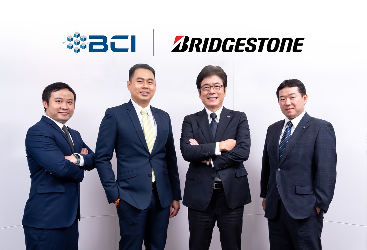 เมื่อเร็วๆนี้ บริษัท บริดจสโตนเซลส์ (ประเทศไทย) จำกัด จับมือ บริษัท บีซีไอ (ประเทศไทย) จำกัด ร่วมเสริมศักยภาพธุรกิจซื้อขายยางรถยนต์ ด้วยการริเริ่มใช้ “บริการหนังสือค้ำประกันอิเล็กทรอนิกส์บนเทคโนโลยีบล็อกเชน ประเภท Common Node (Website)” ซึ่งสามารถใช้บริการผ่านช่องทาง Web application ได้เป็นครั้งแรกของประเทศ และเป็นรายแรกในธุรกิจยางรถยนต์ของไทย โดยมี (ที่ 2 จากขวา) มร. ฟูมิทาคะ ทาคาโอคะ กรรมการผู้จัดการ บริษัท บริดจสโตนเซลส์ (ประเทศไทย) จำกัด ให้การต้อนรับ (ที่ 2 จากซ้าย) นายสิริวัฒน์ เกียรติเจริญสิน ผู้จัดการใหญ่ บริษัท บีซีไอ (ประเทศไทย) จำกัด