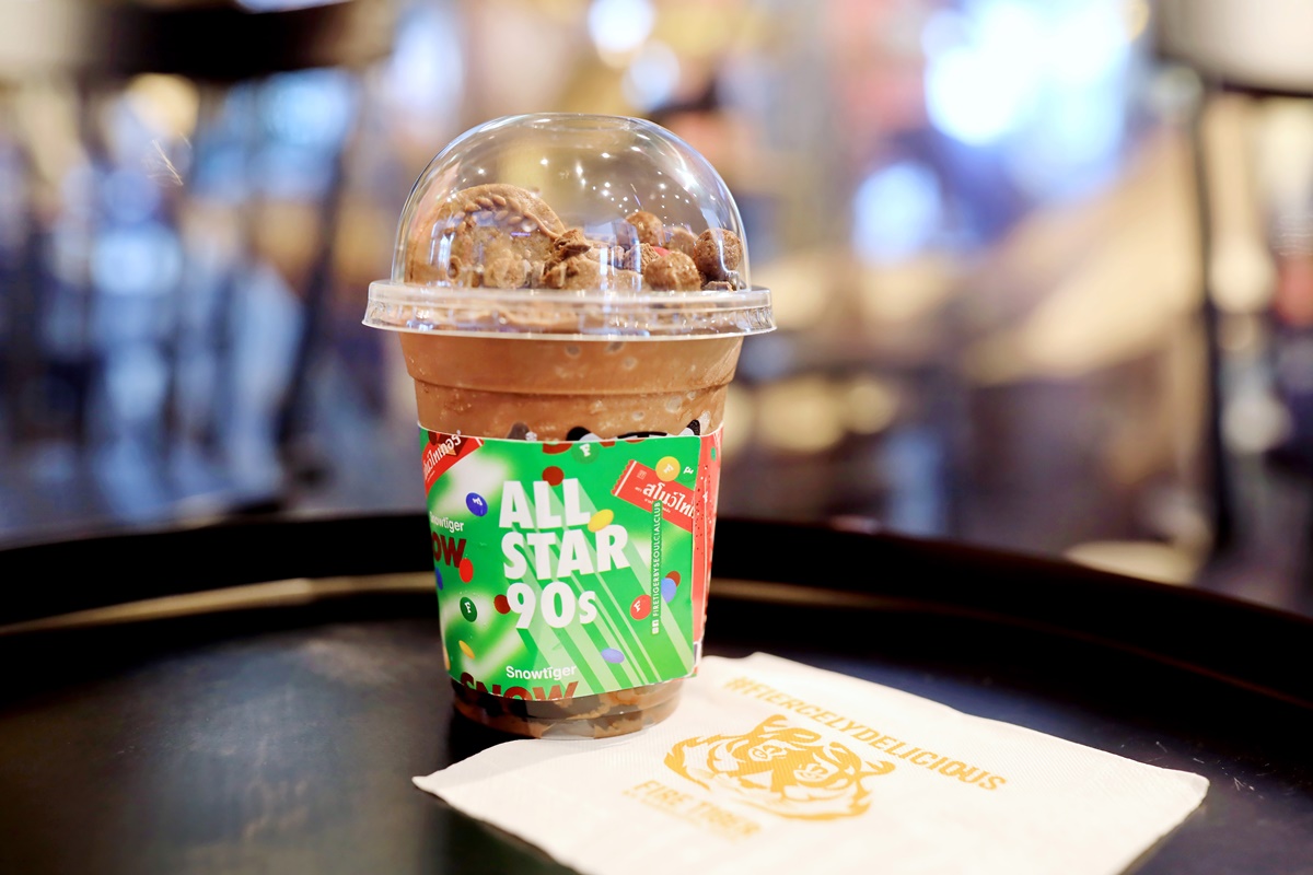 Fire Tiger by Seoulcial Club นอกจากชานมพี่เสือพ่นไฟจะได้รับความนิยมแล้ว ต้องรอคิวเป็นชั่วโมง เพื่อจะได้ชิมเมนูอร่อย วันนี้สามารถใช้คะแนนเมกา สไมล์ รีวอร์ดส 31 คะแนน แลกรับฟรี! ALL STAR 90’s SNOWTIGER แบบไม่ต้องรอนานอีกต่อไป มาลิ้มลองก็สร้างความฮือฮาให้กับสายคาเฟ่อยู่ไม่เบา ร้านอยู่ชั้น 2 โซนสีส้ม